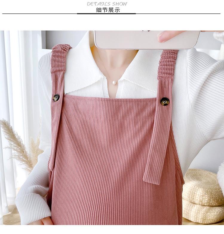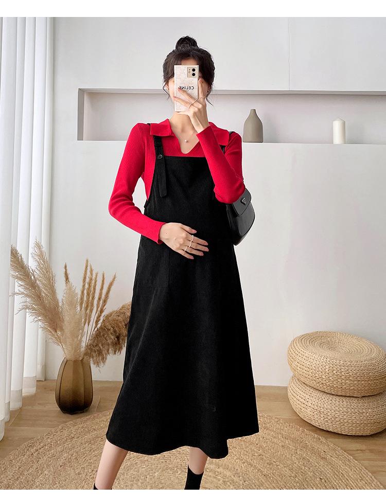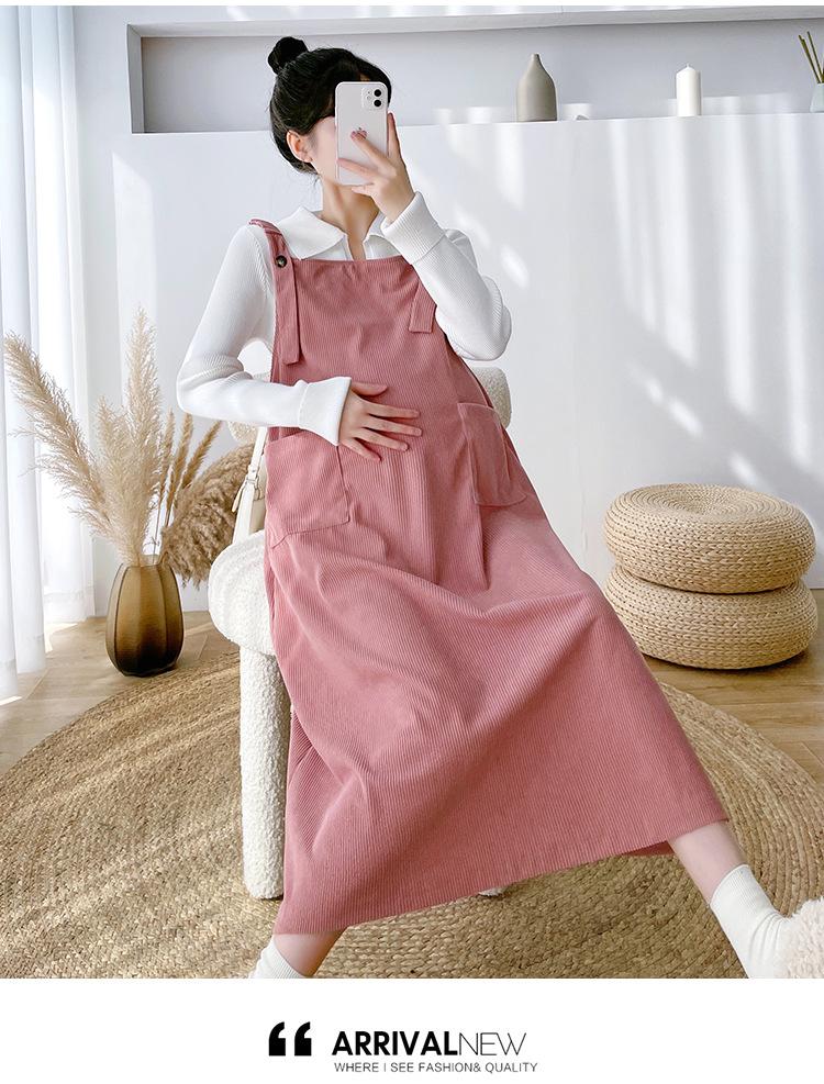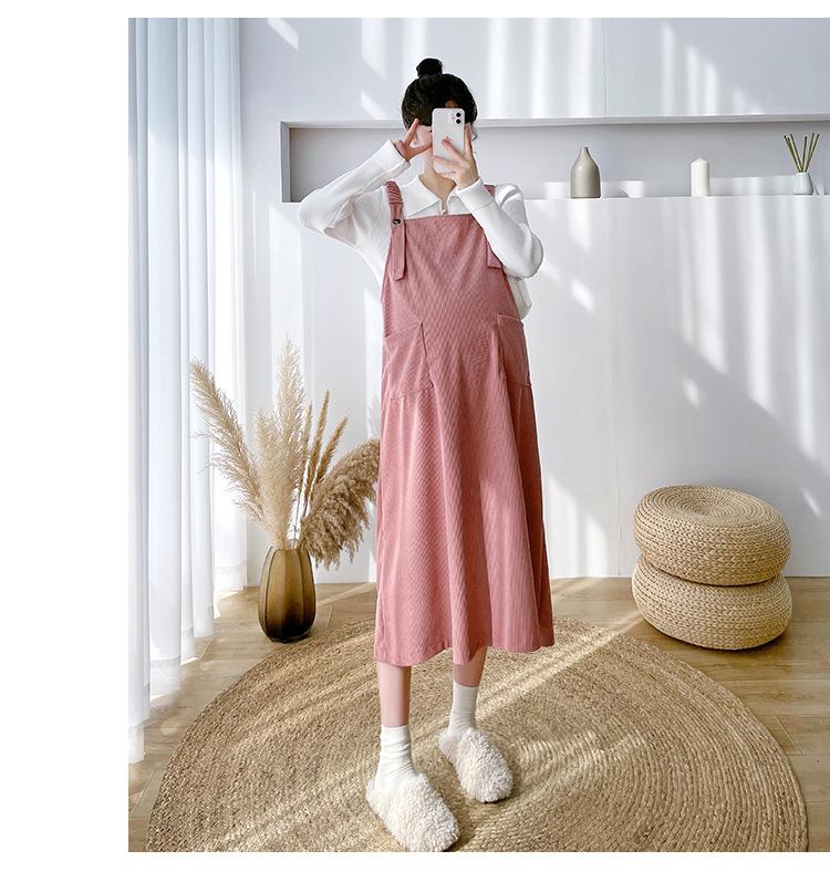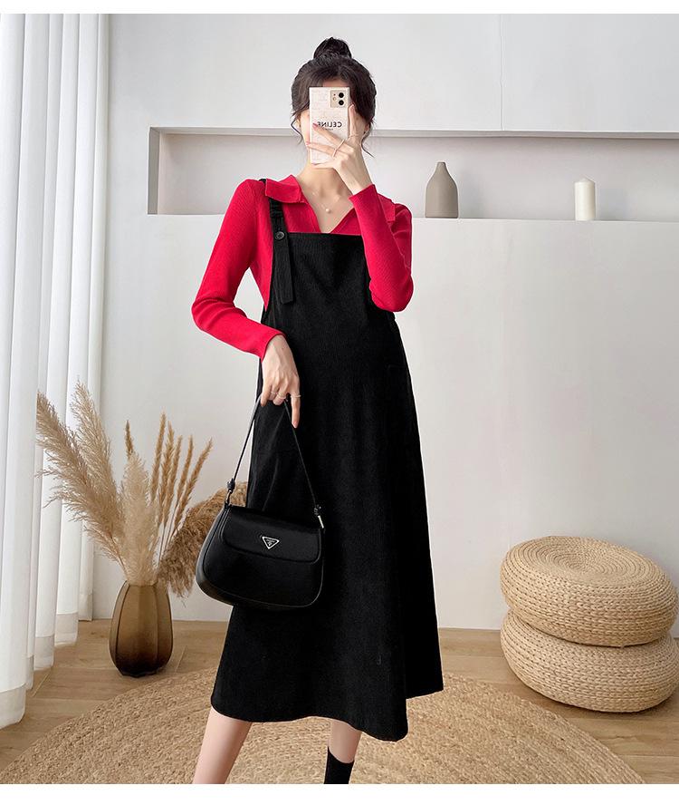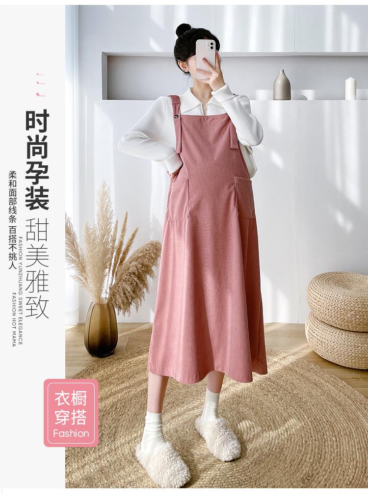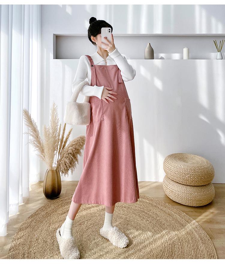 Roupas de maternidade moda terno primavera e outono 2024 novas roupas de maternidade lapela camisa de fundo + saia suspensório conjunto de duas peças para mulheres