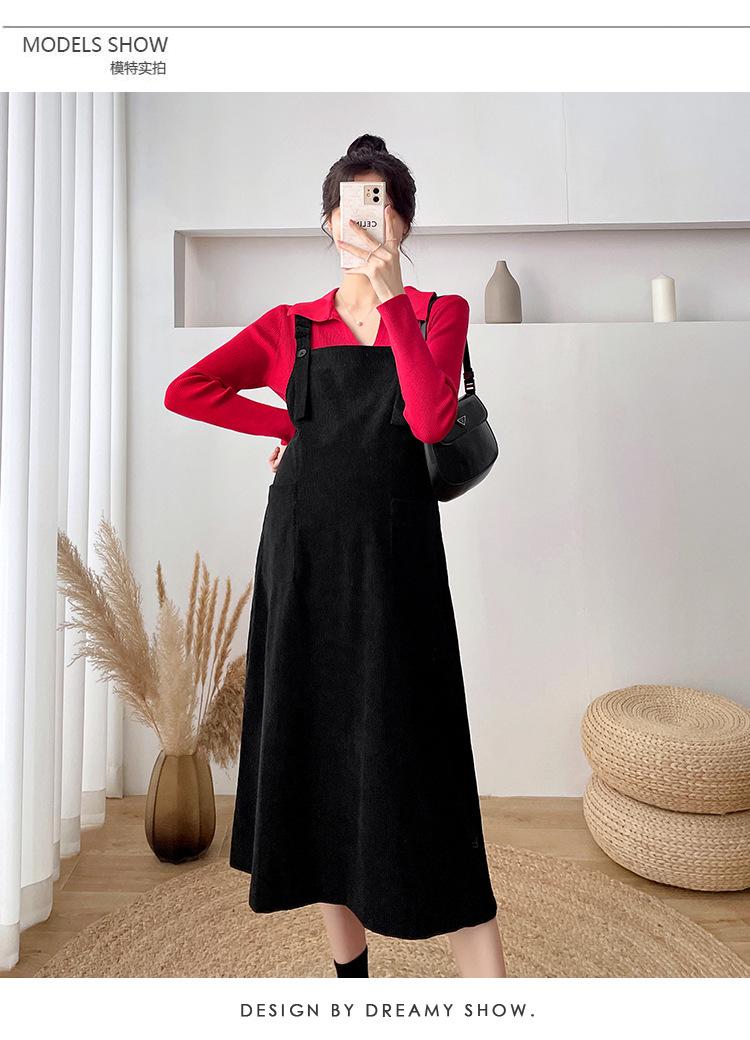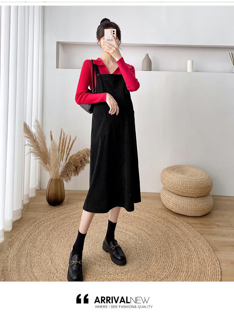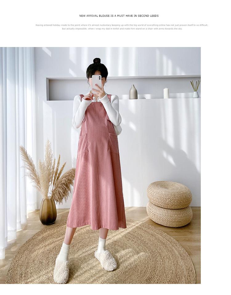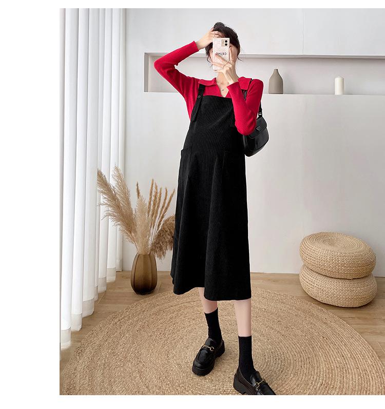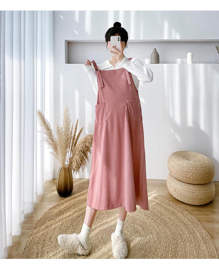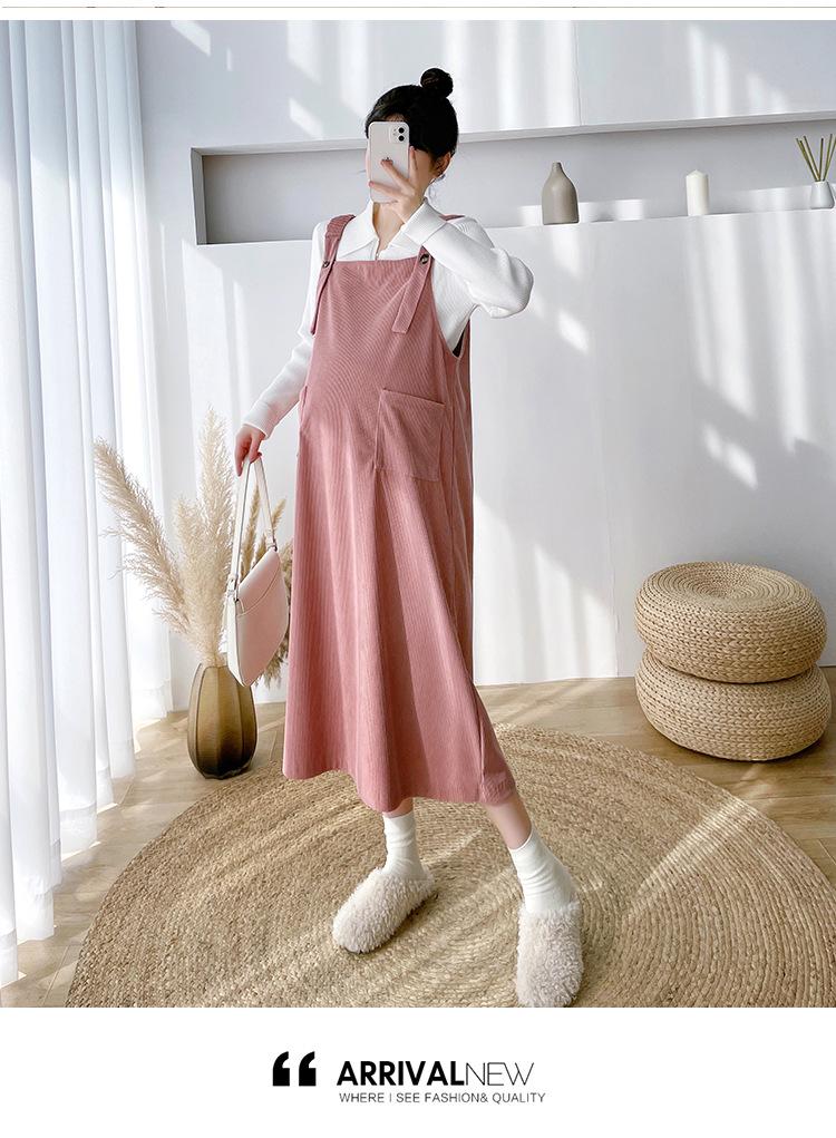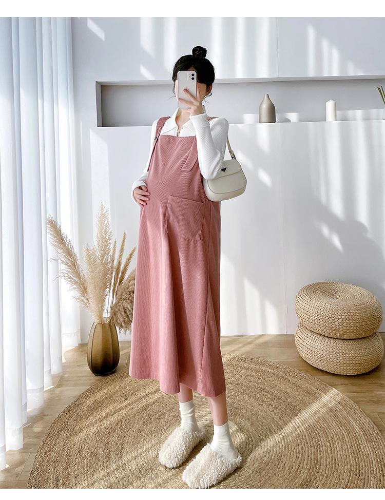 Roupas de maternidade moda terno primavera e outono 2024 novas roupas de maternidade lapela camisa de fundo + saia suspensório conjunto de duas peças para mulheres