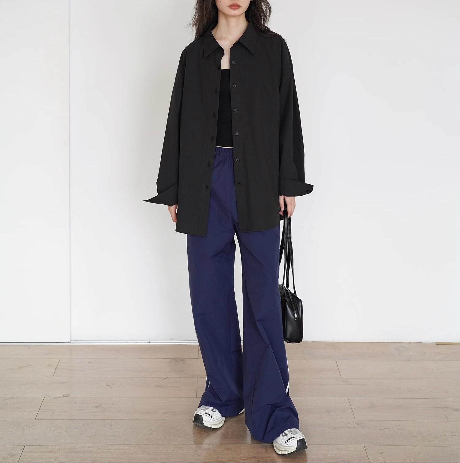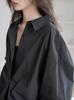 Camisa preta feminina manga comprida nicho elegante textura de alta qualidade casaco francês feminino primavera e outono