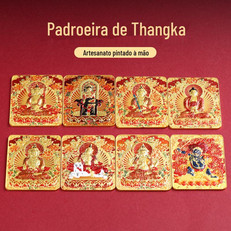 Relevo frente e verso cinco mestres oito santos padroeiros manjusri cinco mestres frente e verso tridimensional thangka retrato pendente para pendurar itens pintados Xizang