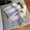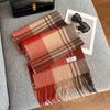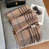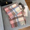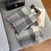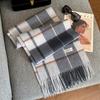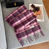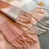 2024 Novo cachecol xadrez dupla face feminino outono e inverno engrossado 100% lã cachecol suave estilo japonês borla xale