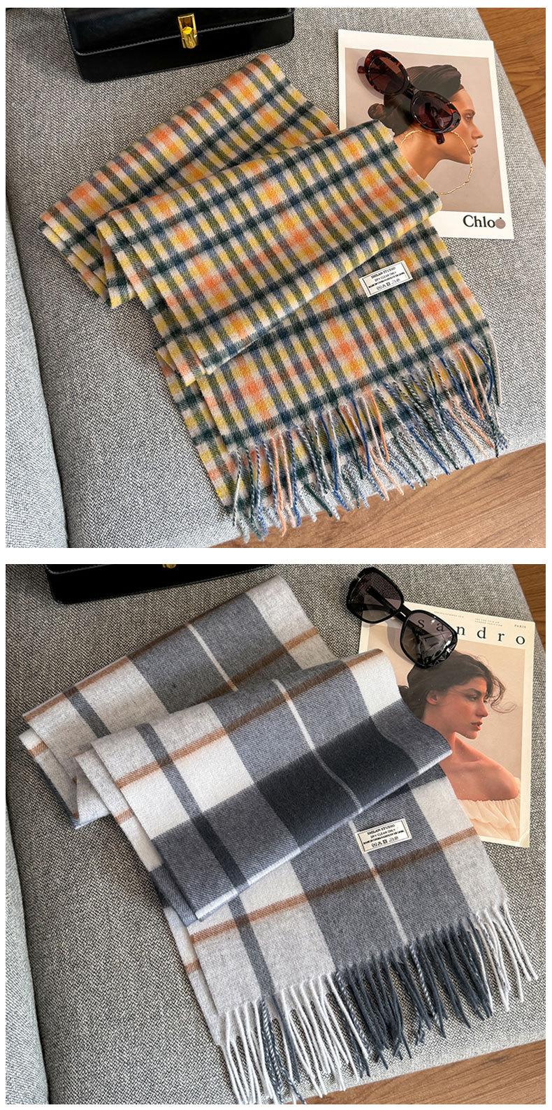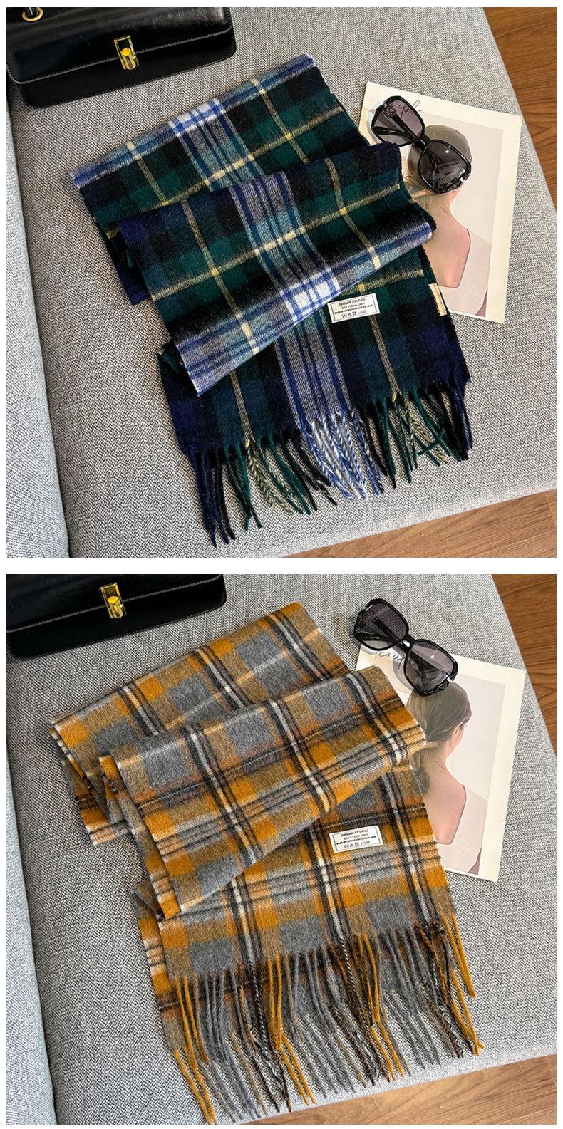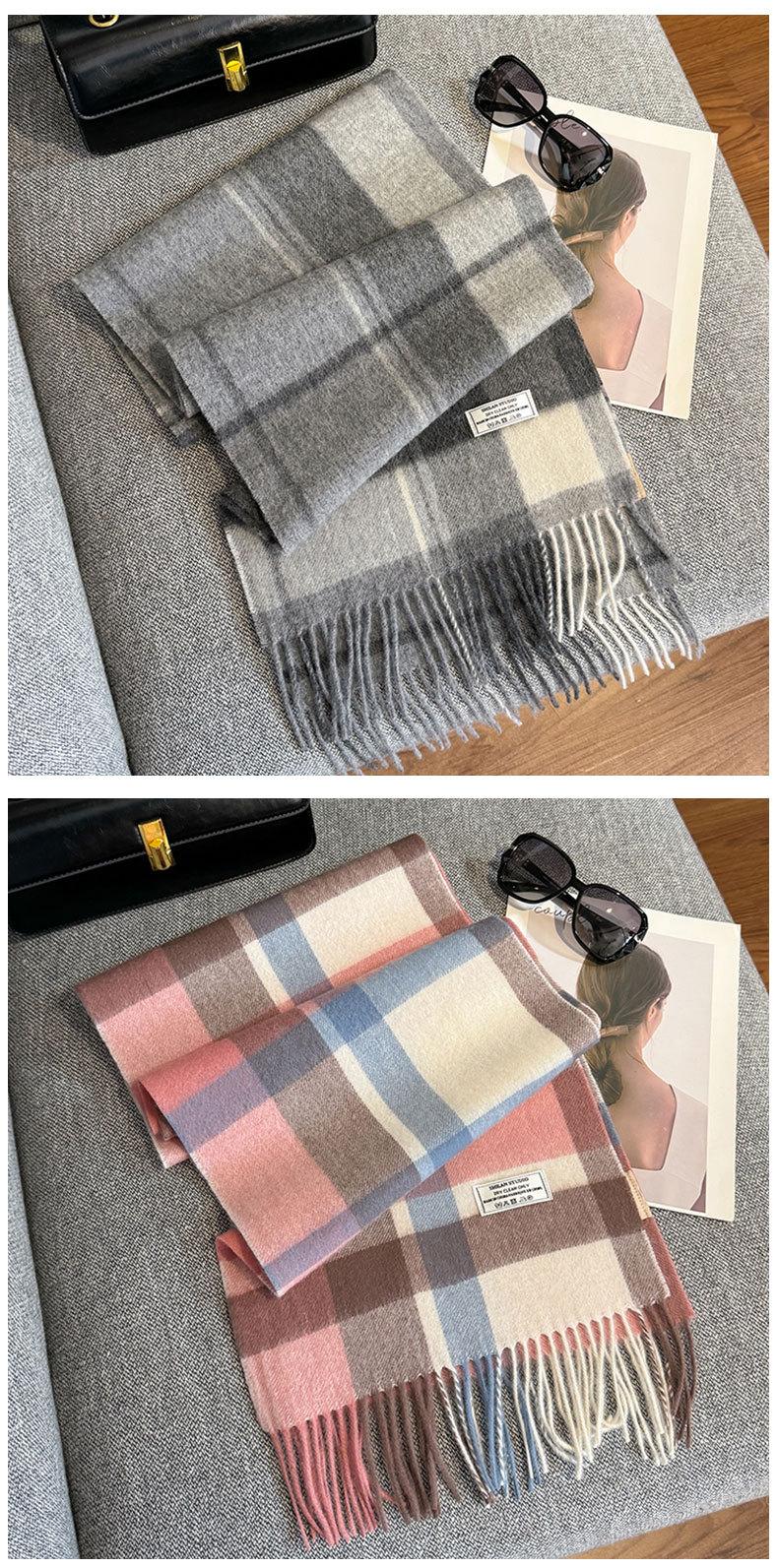 Compre 2024 Novo cachecol xadrez dupla face feminino outono e inverno engrossado 100% lã cachecol suave estilo japonês borla xale no atacado no Joom.pro