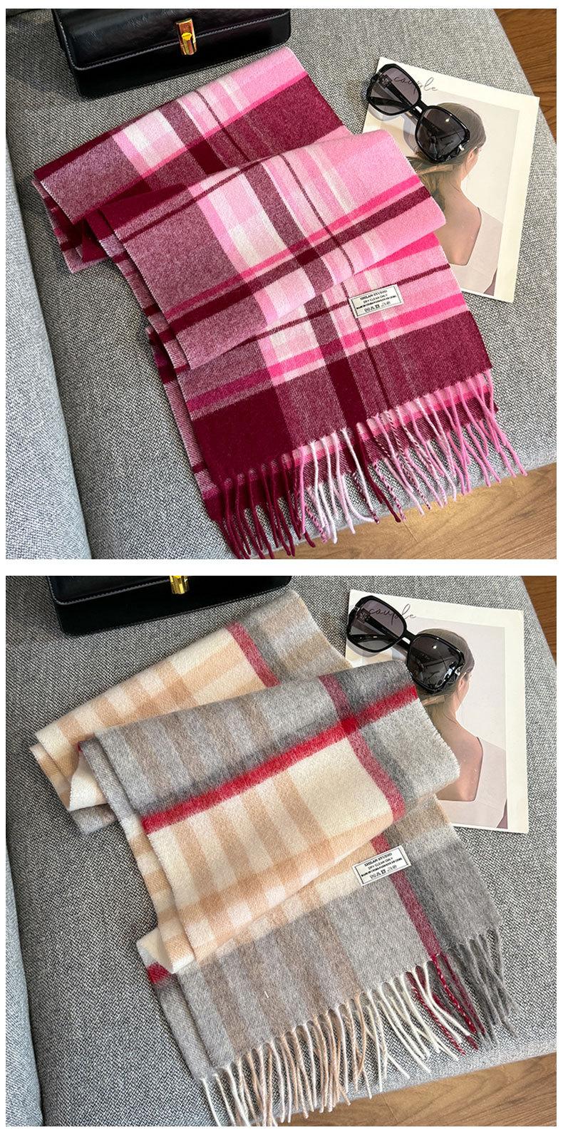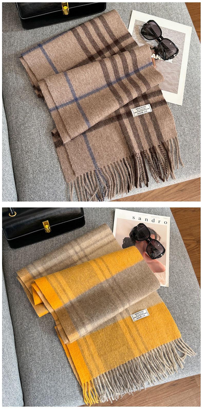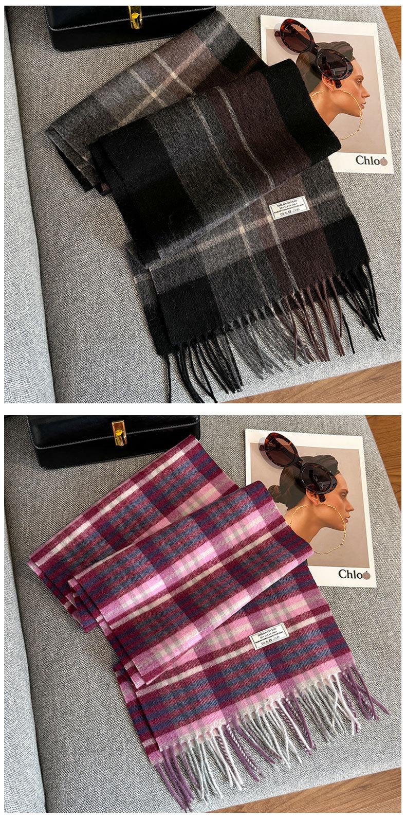 Compre 2024 Novo cachecol xadrez dupla face feminino outono e inverno engrossado 100% lã cachecol suave estilo japonês borla xale no atacado no Joom.pro