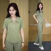 2024 Roupa Europeia e Americana Transfronteiriça Primavera Novo Terno da Moda Cardigã com Zíper Cor Sólida Terno de Calças Retas