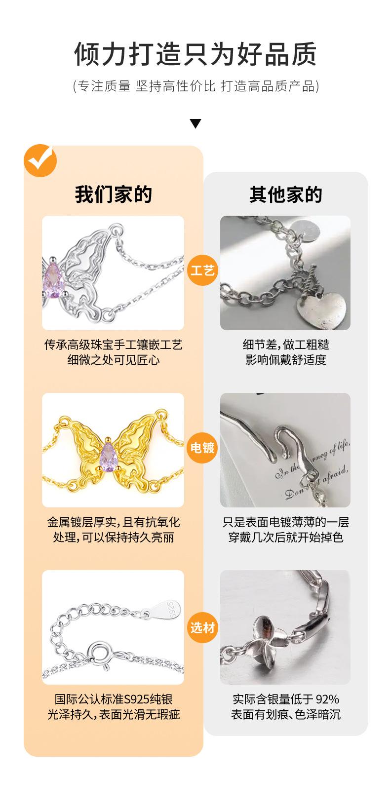 Pulseira Borboleta Sonhadora para Mulheres, Prata de Lei S925, Luxo Leve, Sensação de Alta Qualidade, Cravejada com Diamantes, Pulseira Empilhável de Camada Dupla, Joia Presente para Namorada