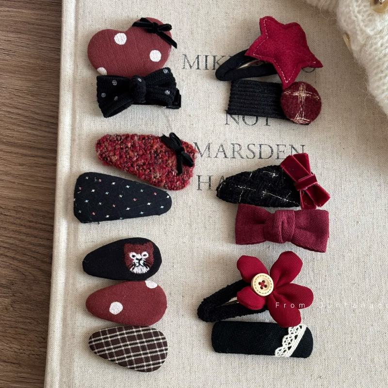 1# red fat bowknot oval pair, 2# black water drops red bow hairpin a pair, 3# black oval smiley hairpin pair, ...