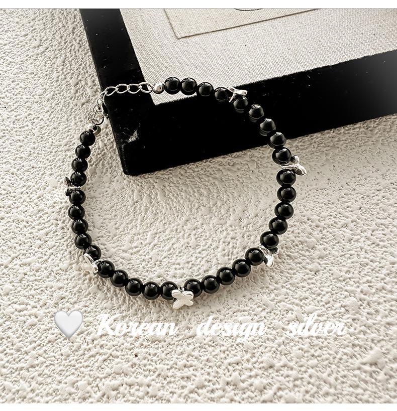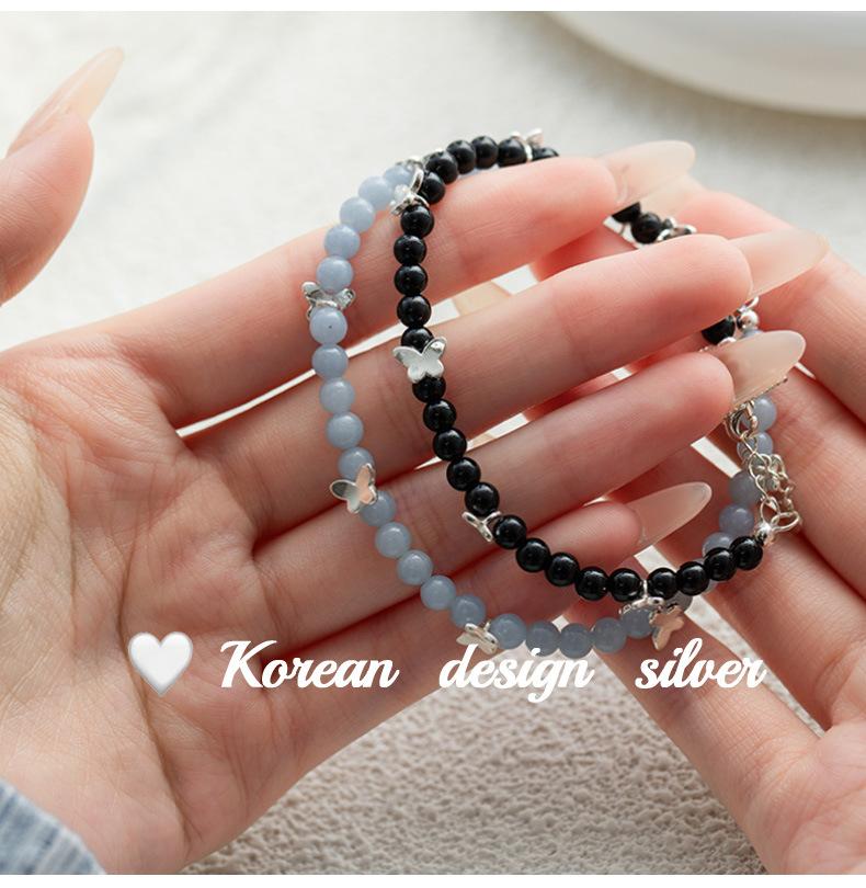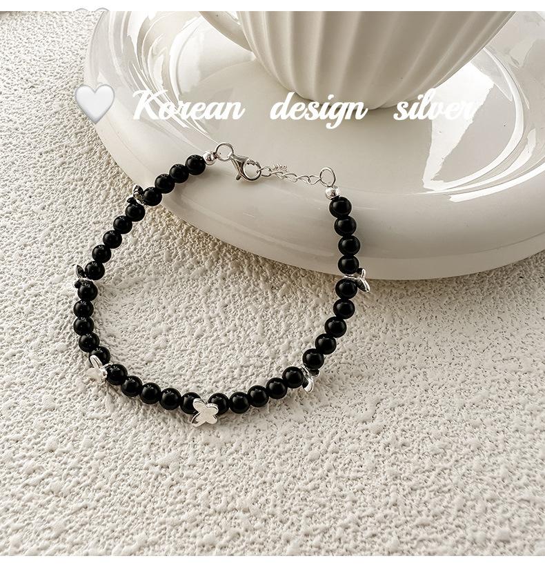 Pulseira Borboleta Ágata Negra Doce e Fresca Prata Esterlina S925 Design Sofisticado Estilo Ins Personalizada Acessível Pulseira de Luxo