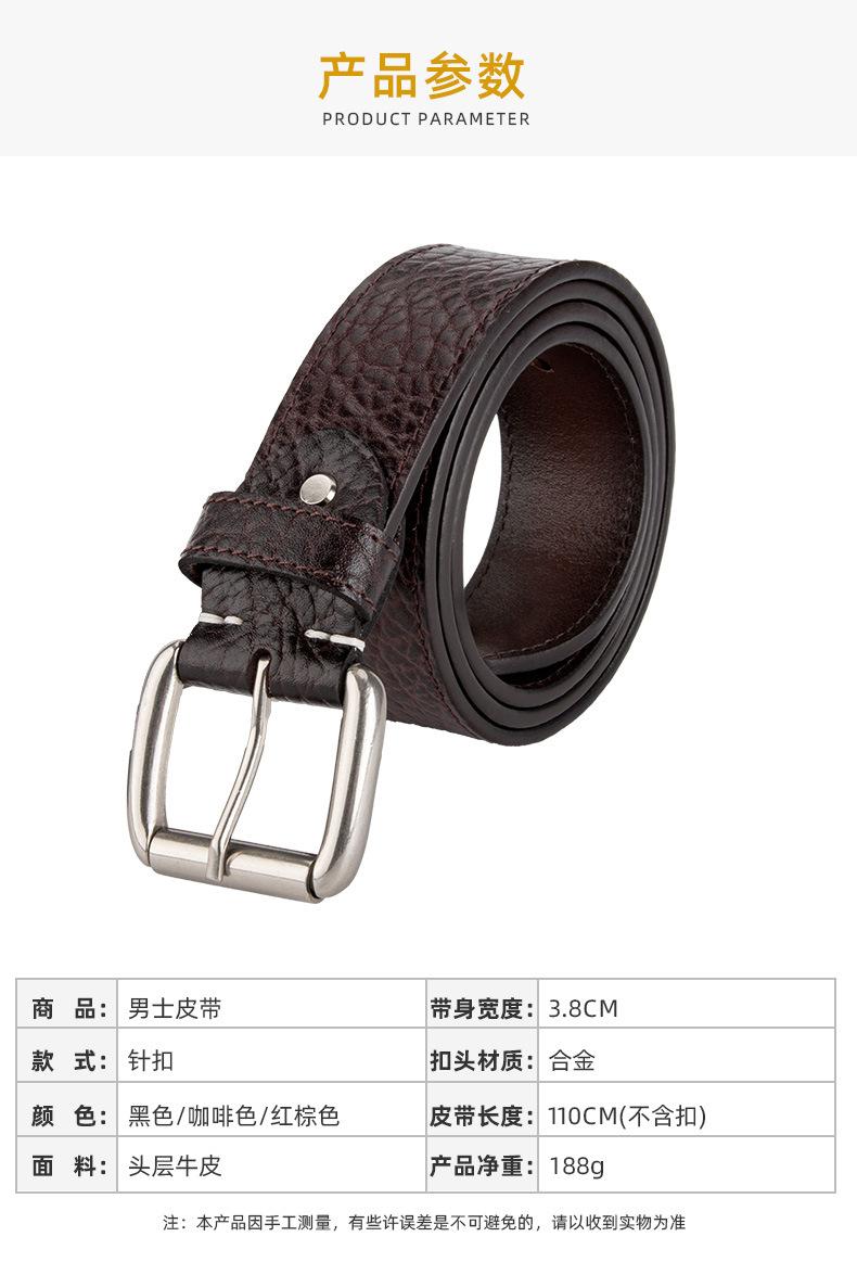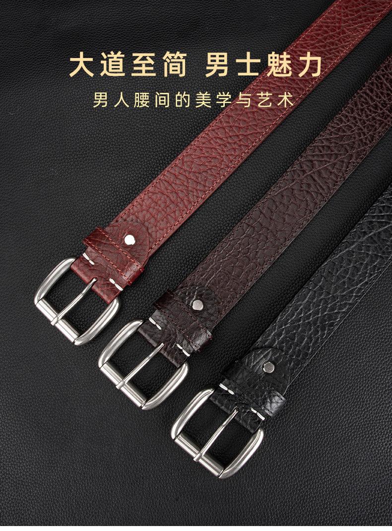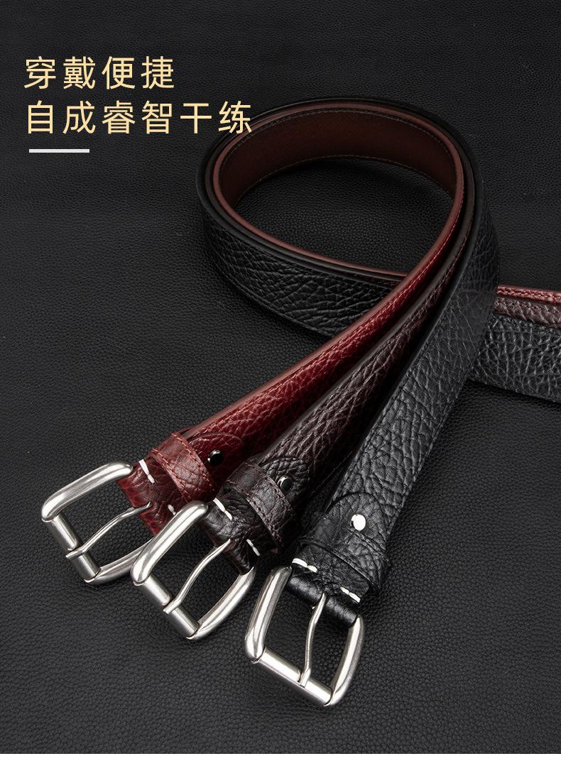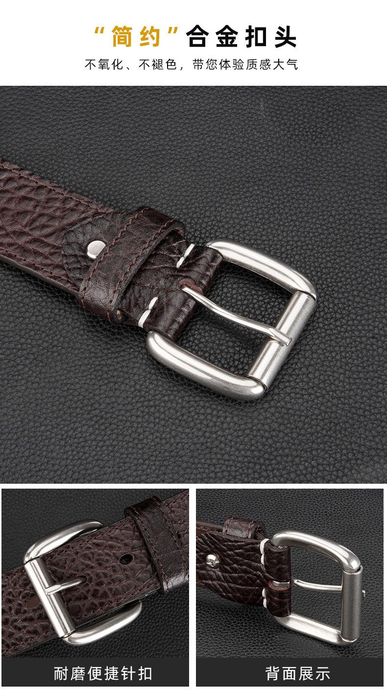 Cinto masculino da moda, camada superior, couro de vaca, liga, fivela de pino, casual, negócios, todos os tipos de calças masculinas decorativas, cinto, fábrica de Guangzhou
