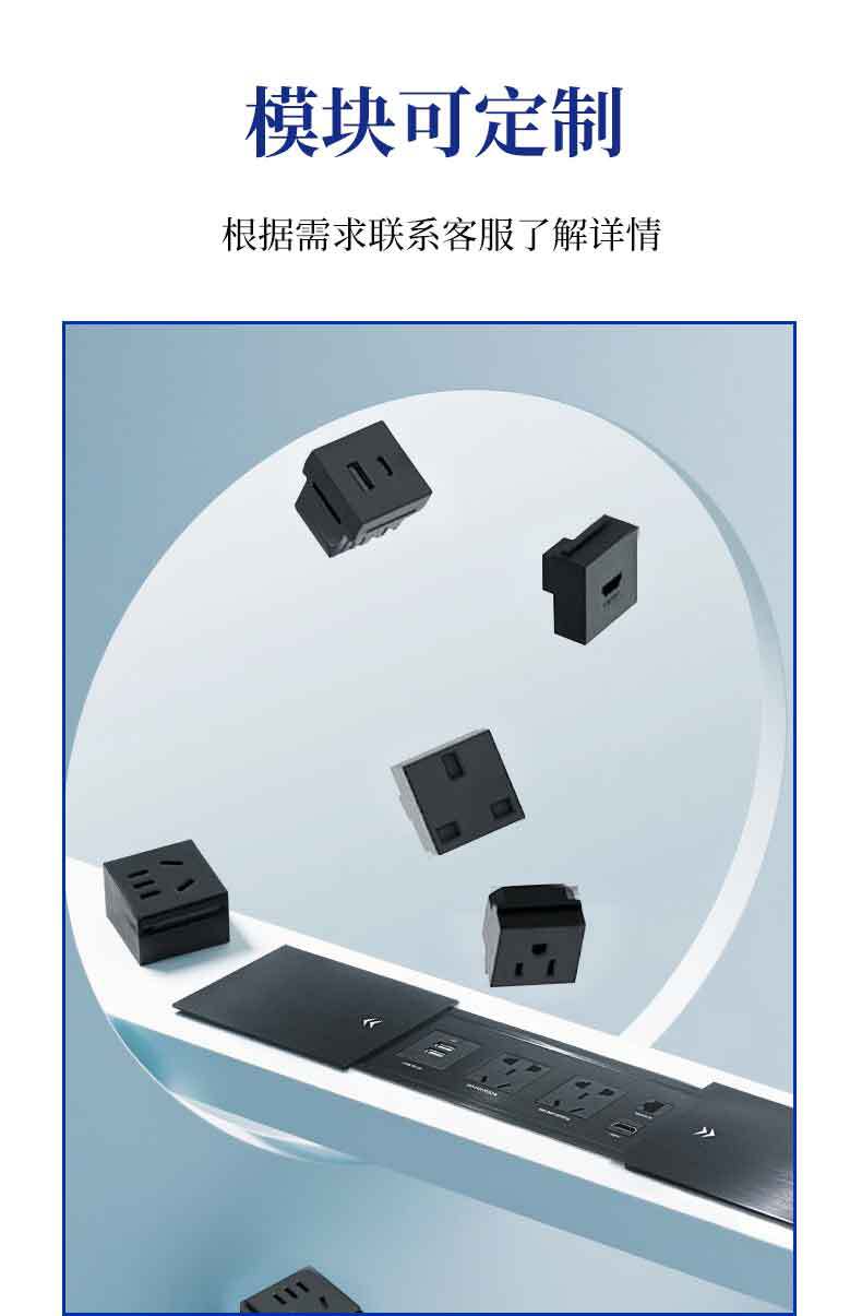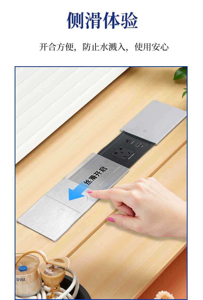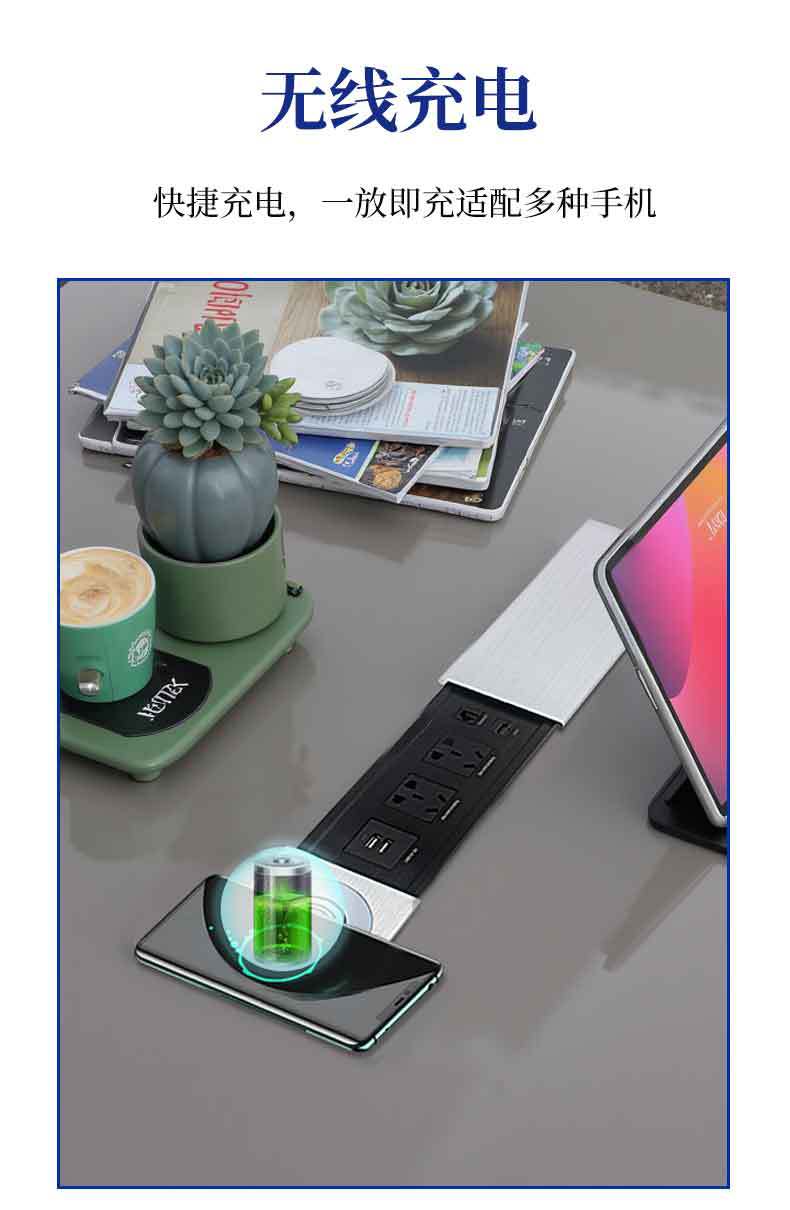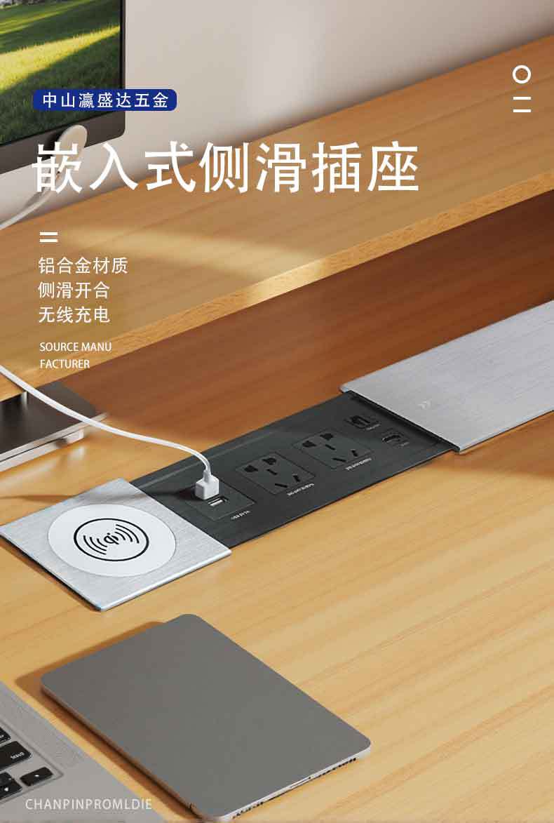 Tomada de mesa para reunião de escritório, tampa deslizante lateral embutida, carregamento sem fio USB, função multimídia, plugue oculto