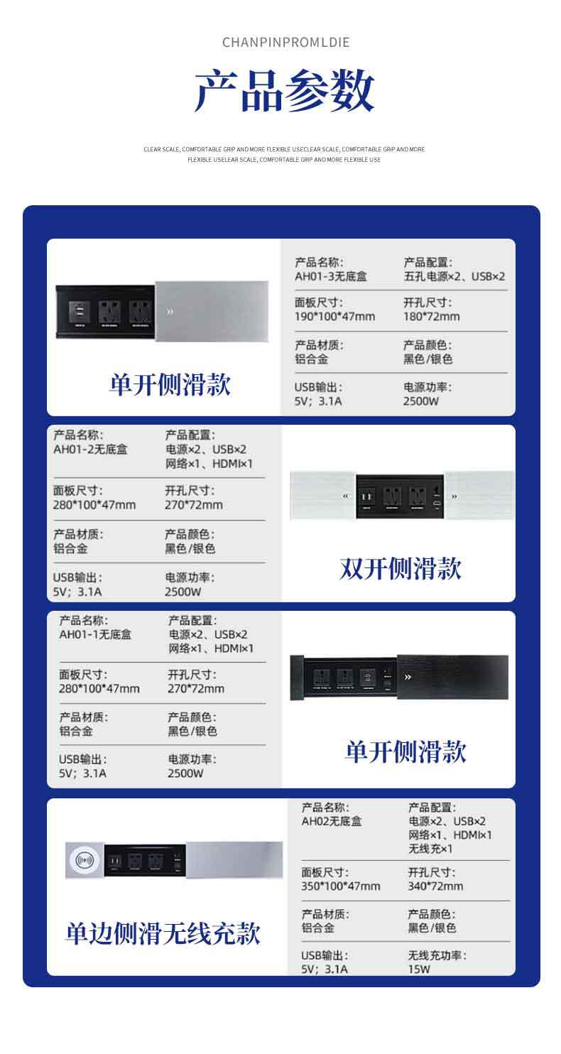 Ah02 (brushed black) power supply*2+dual usb+network+hd+wireless charging without power cord, Ah02 (brushed si...