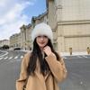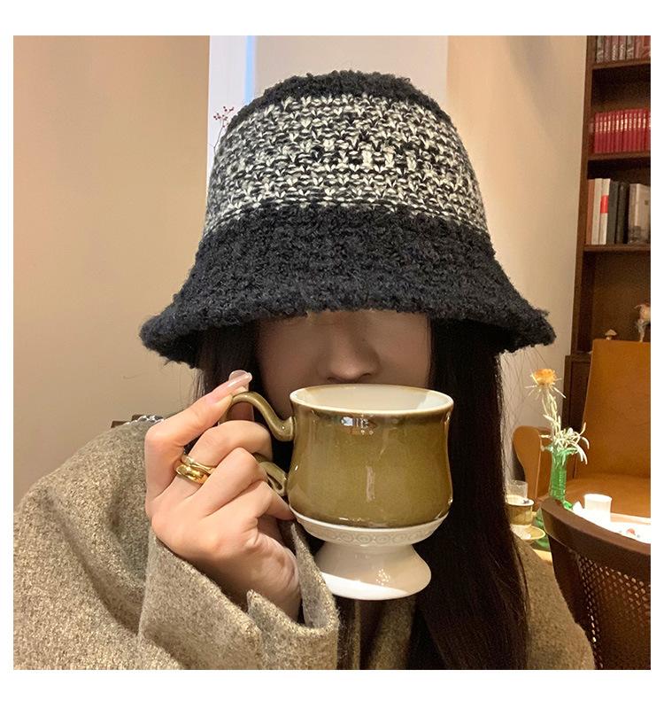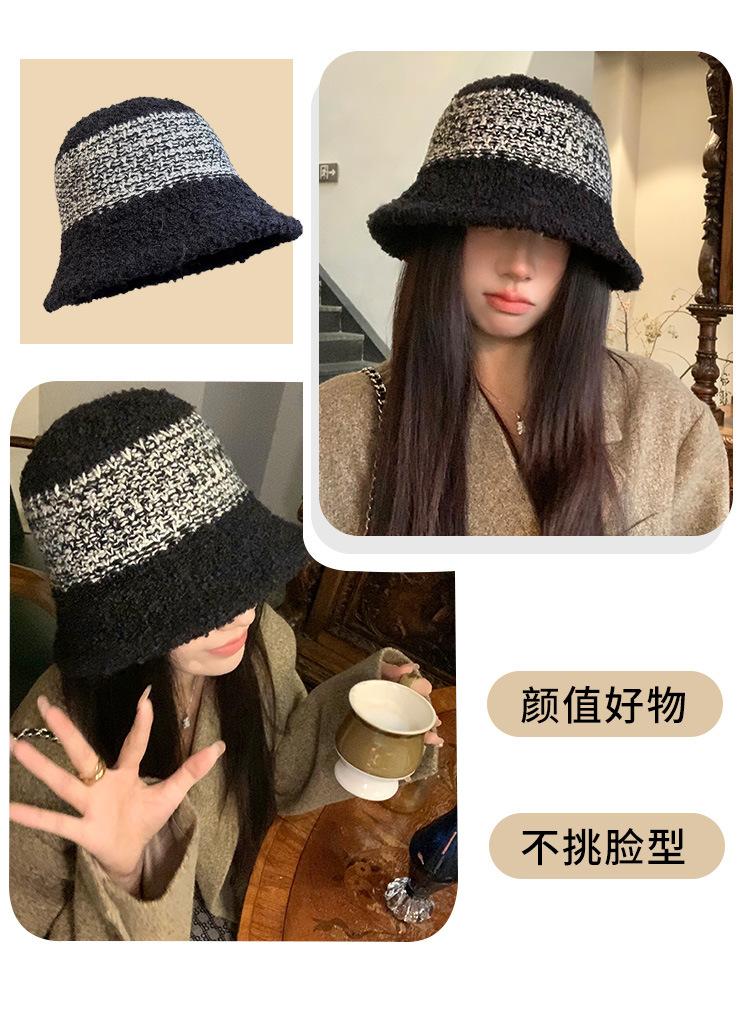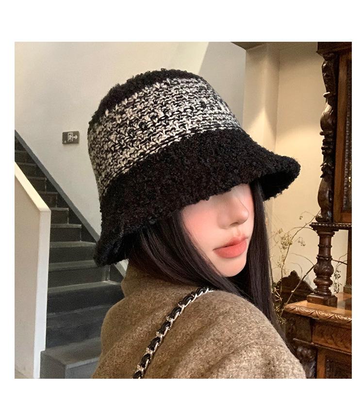Japonês retro lã de cordeiro preto chapéu de pescador outono e inverno das mulheres proteção da orelha rosto emagrecimento pequeno chapéu de malha grande circunferência da cabeça chapéu da bacia