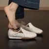 Sapatos de Couro Genuíno Three Sheep Femininos 2025 Novos Sapatos Casuais Baixos para as Quatro Estações Femininos Mais Fáceis de Combinar Estilo Coreano de Um Passo Sapatos Brancos