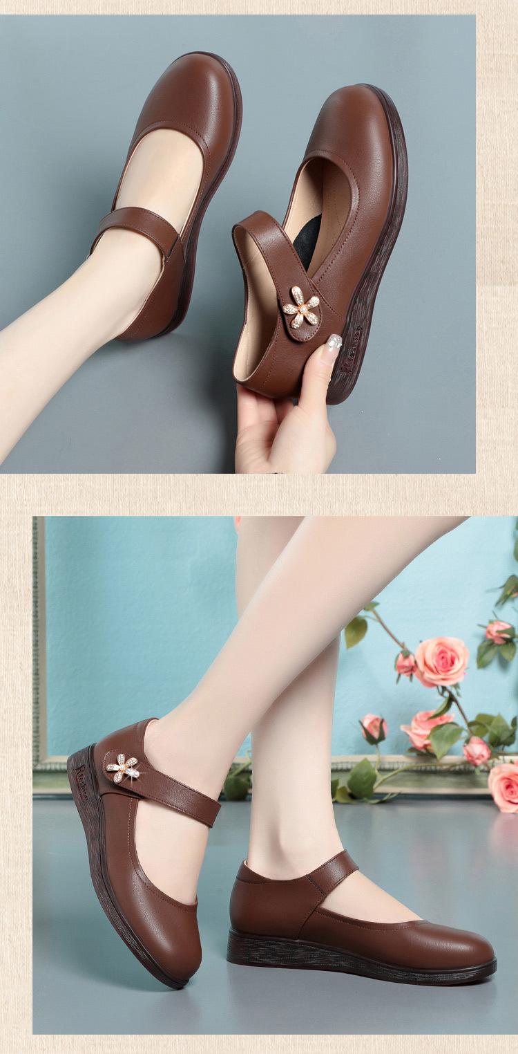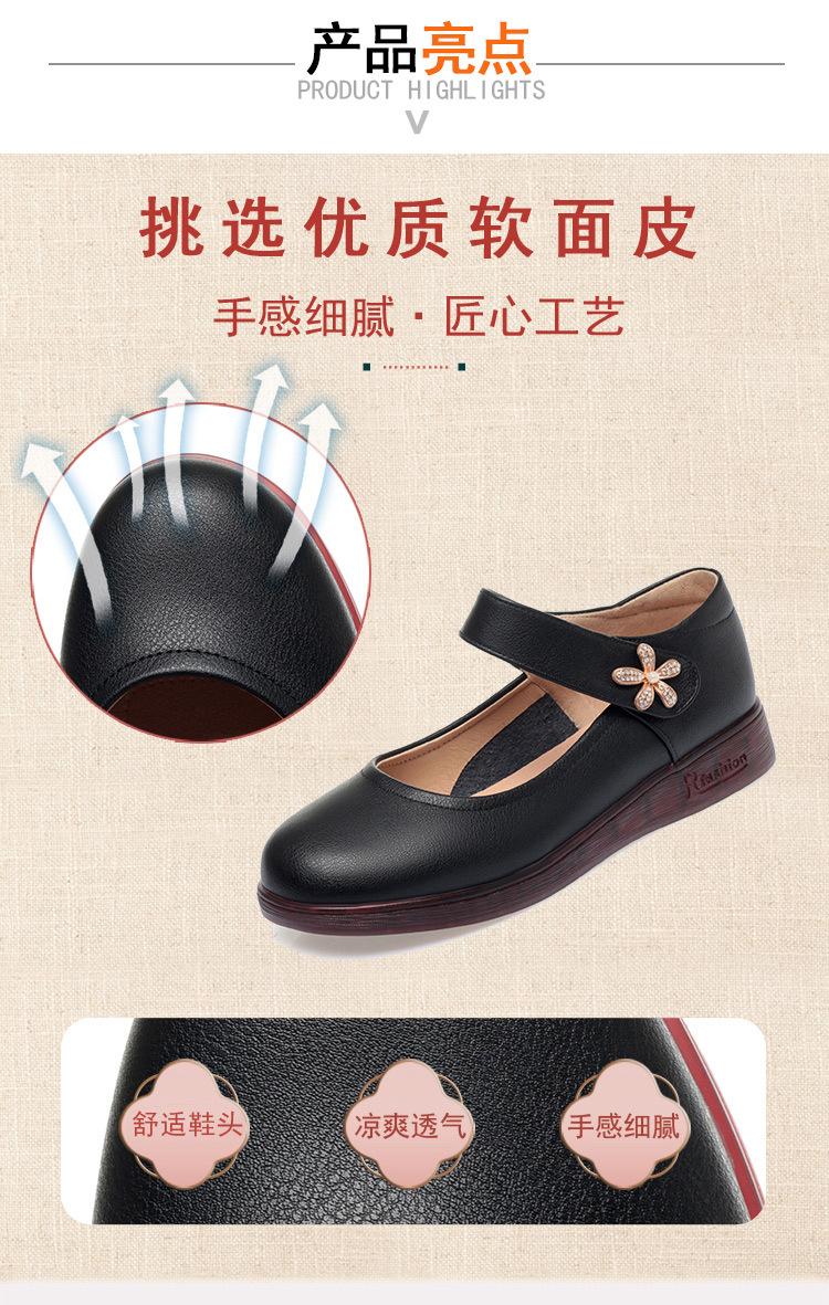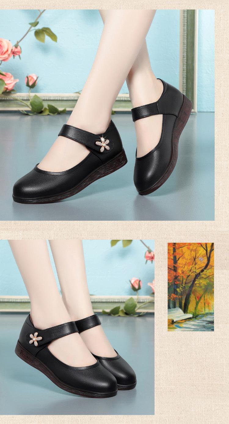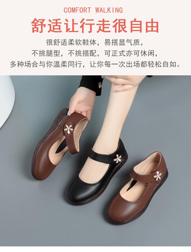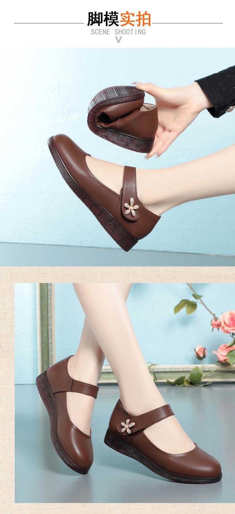 Sapatos de mãe de sola de boi Primavera e Outono Sapatos femininos para meia-idade e idosos Sapatos femininos Sapatos de couro macio Sapatos de sola macia Sapatos baixos confortáveis
