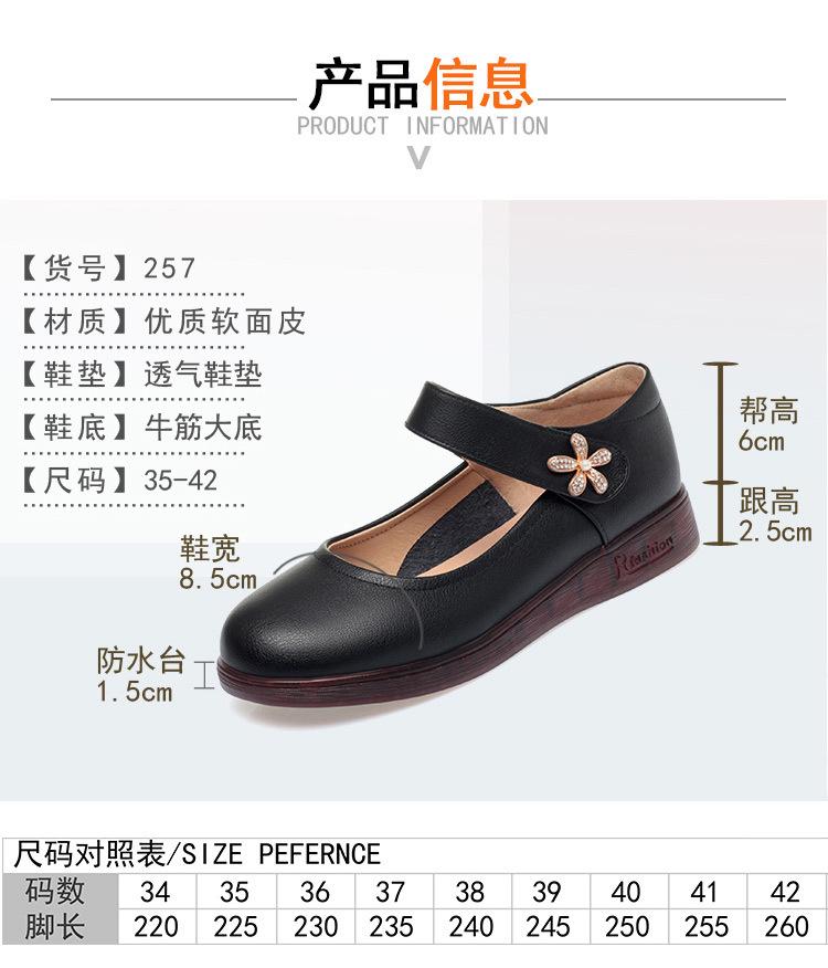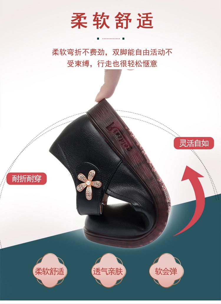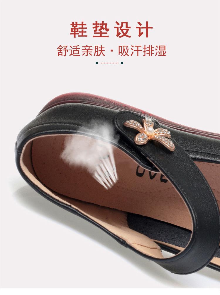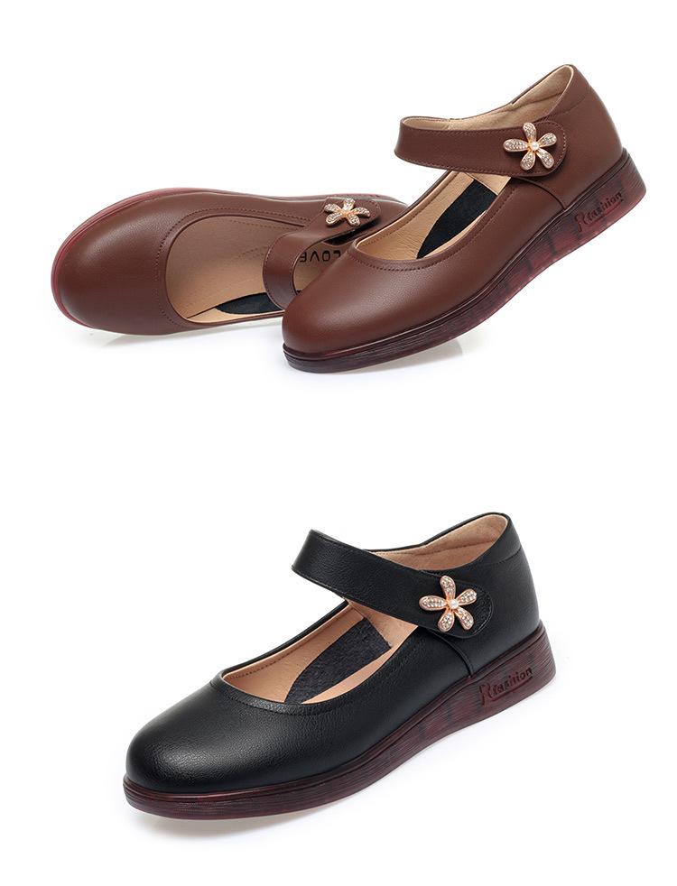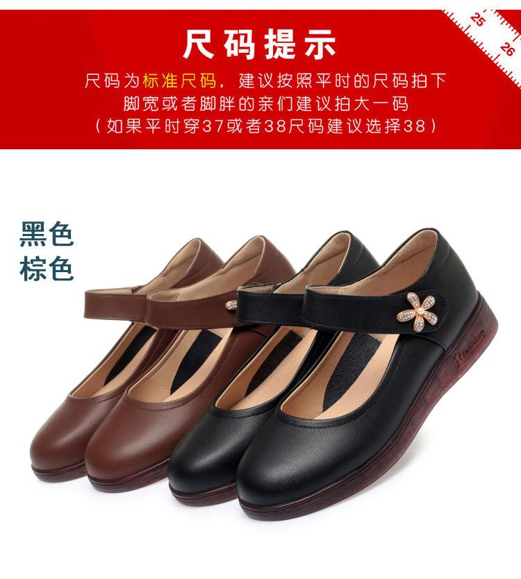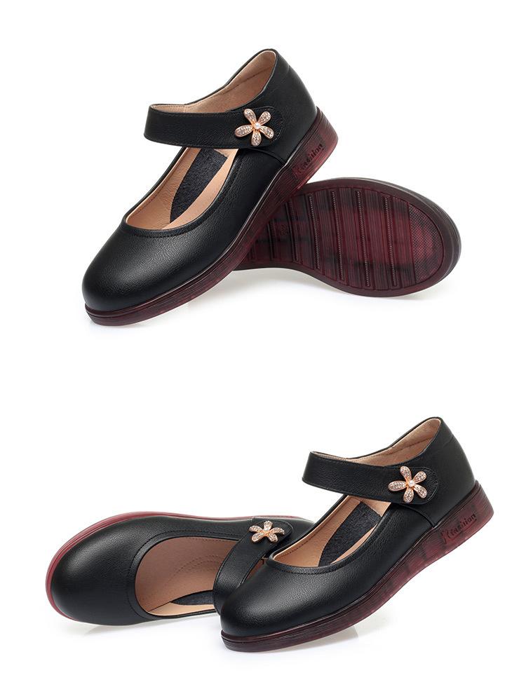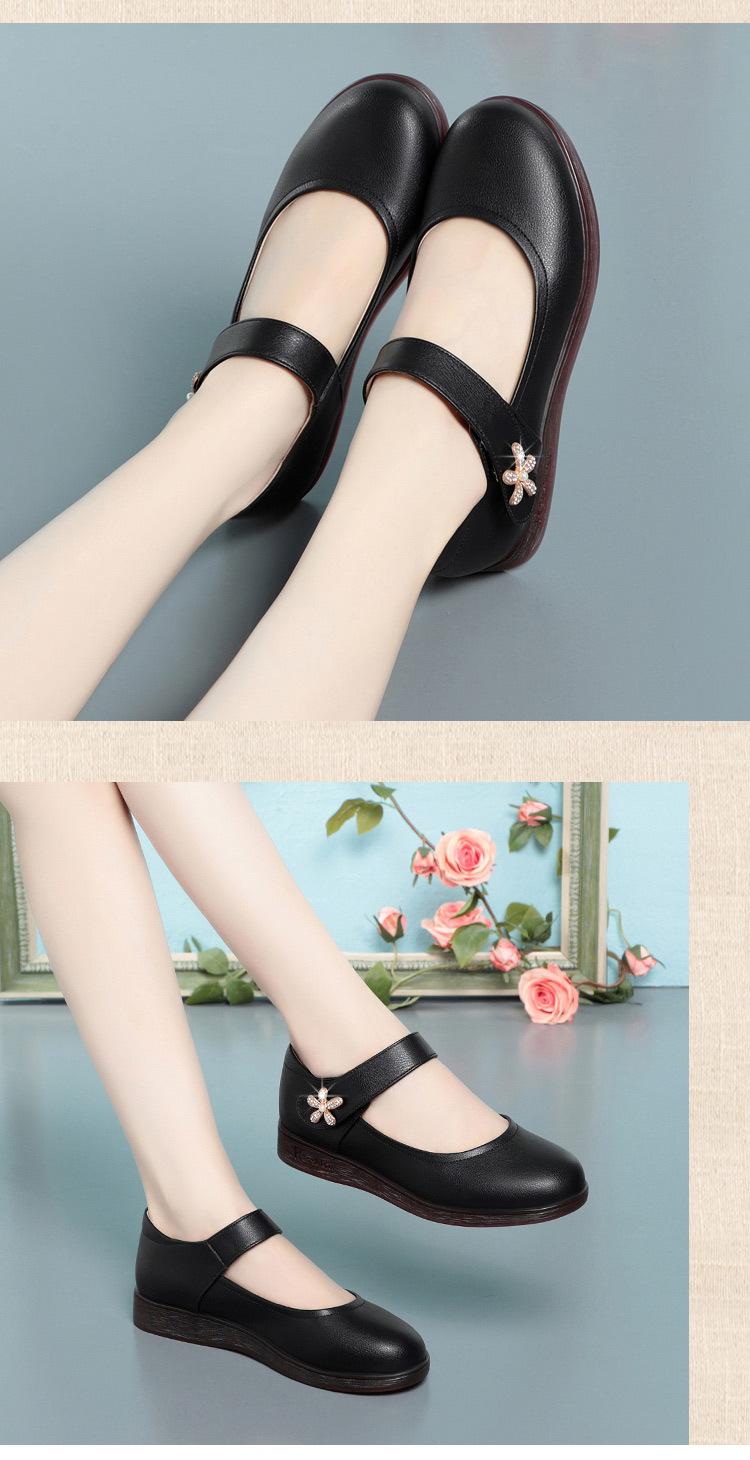 Sapatos de mãe de sola de boi Primavera e Outono Sapatos femininos para meia-idade e idosos Sapatos femininos Sapatos de couro macio Sapatos de sola macia Sapatos baixos confortáveis