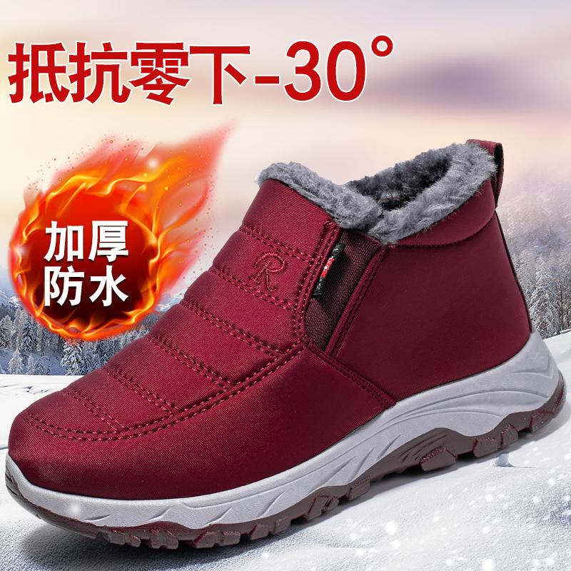Sapatos de algodão femininos inverno forrado de lã quente velho Pequim algodão botas espessadas impermeável antiderrapante confortável meia-idade e idosos mães algodão sapatos