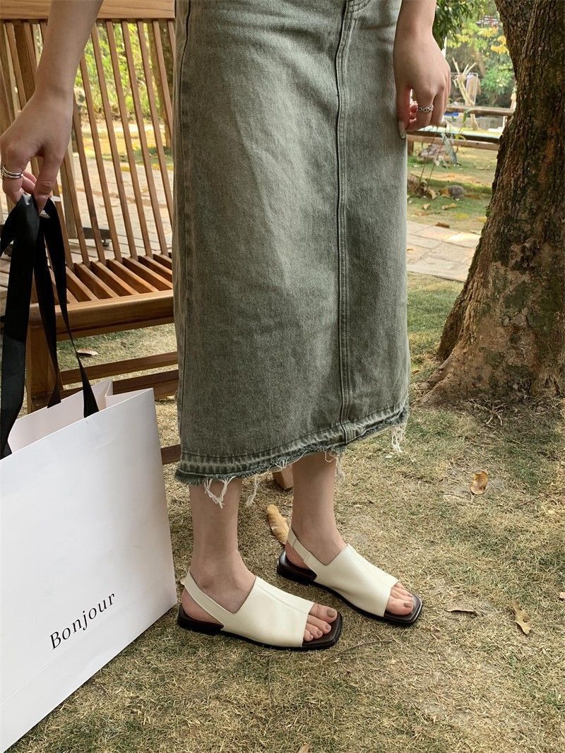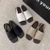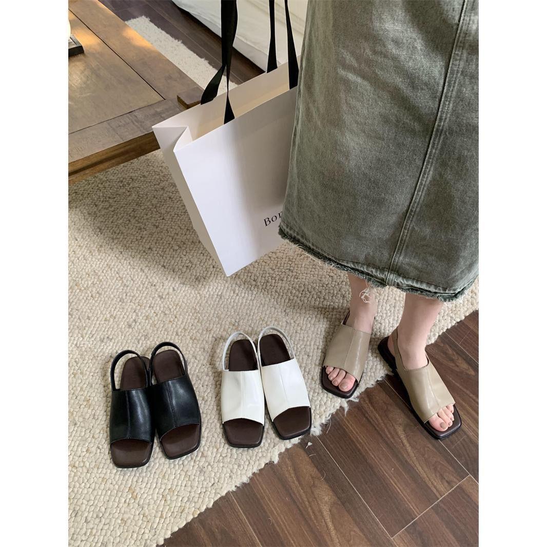 Sandálias de bico quadrado femininas 2024 verão desgaste externo macio plano retro moda all-match estilo coreano sandálias sandálias completas