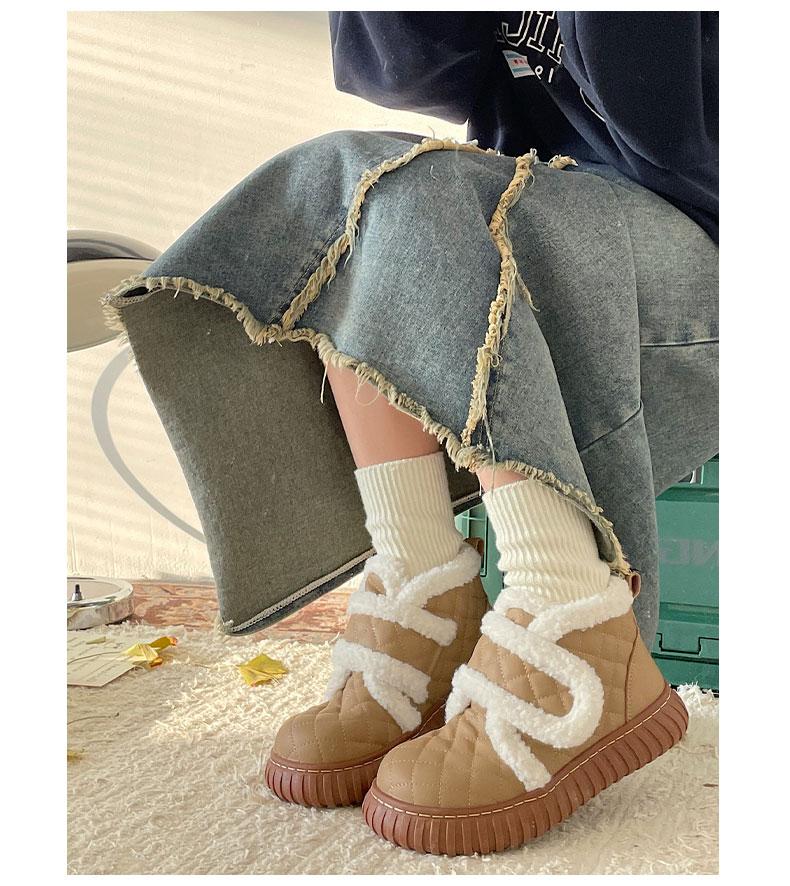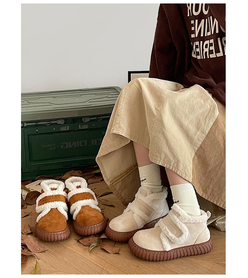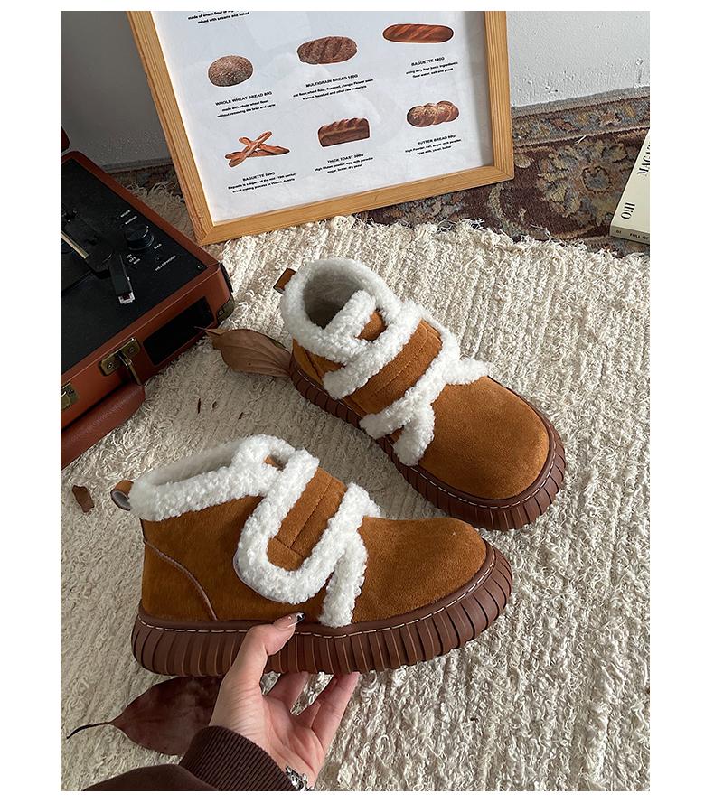 Há um gancho e um laço de pêssego na árvore Mao Mao botas de neve 2024 novas mulheres inverno forrado de lã grossa desgaste exterior sapatos baixos de algodão