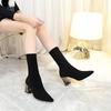 Comércio exterior europeu e americano plus size forrado de lã com mosca tecido respirável botas curtas femininas transfronteiriças salto grosso pontiagudo botas elásticas de malha desejo fornecimento