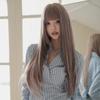 Peruca feminina longa e lisa, cabelo fino, rattan em pó, top completo, hulset, franja de ar da moda, fibra química, alta temperatura, seda, tipo manga, peruca