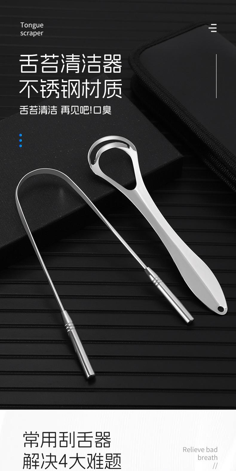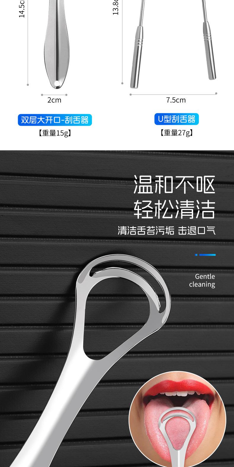 Short handle U-shaped tongue scraper · silver, Double-layer leakage tongue scraper · silver