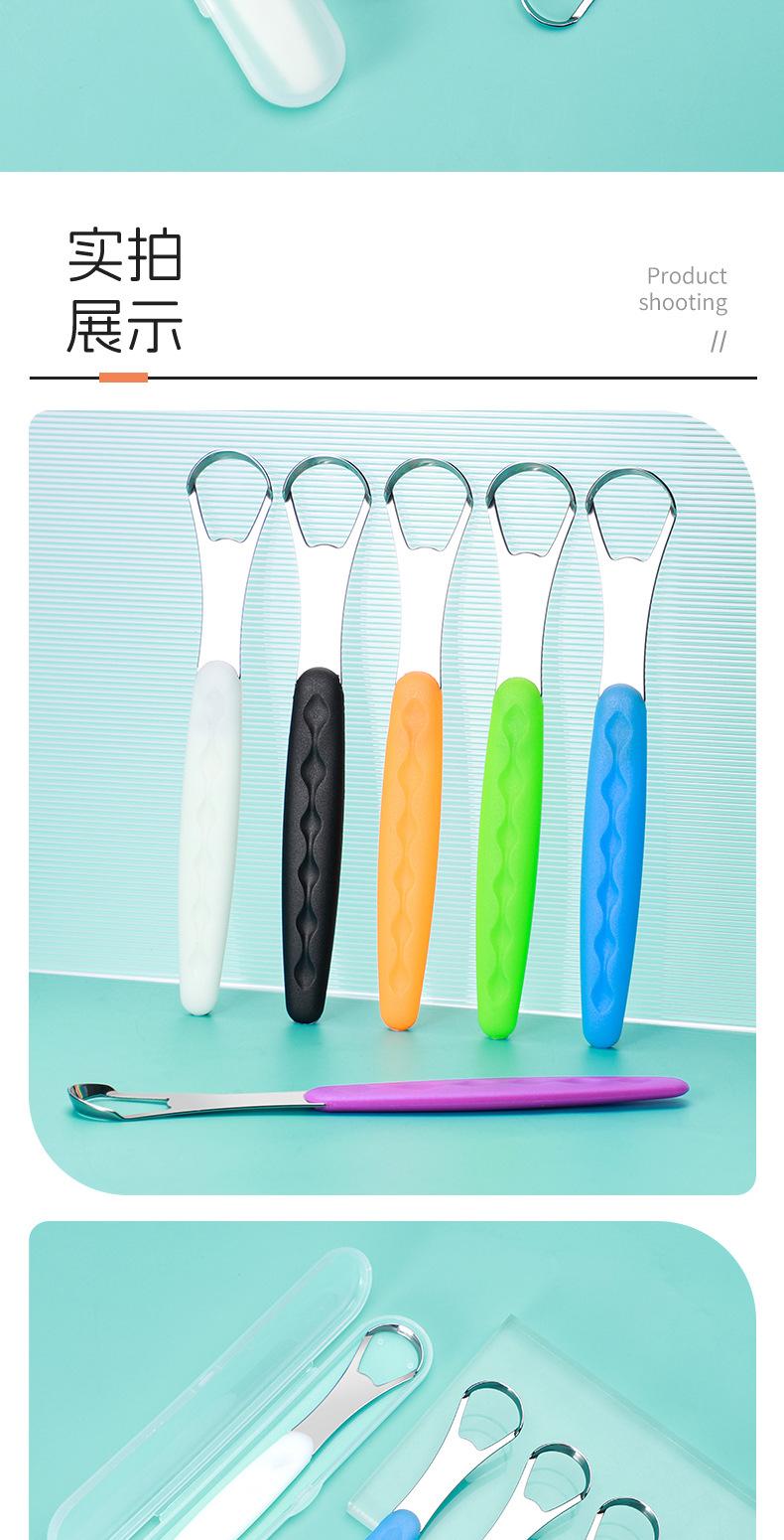 Raspador de língua de aço inoxidável, dispositivo para revestimento da língua, ferramenta de limpeza oral, placa para língua, além de mau hálito, terno de plástico colorido para adultos, atacado
