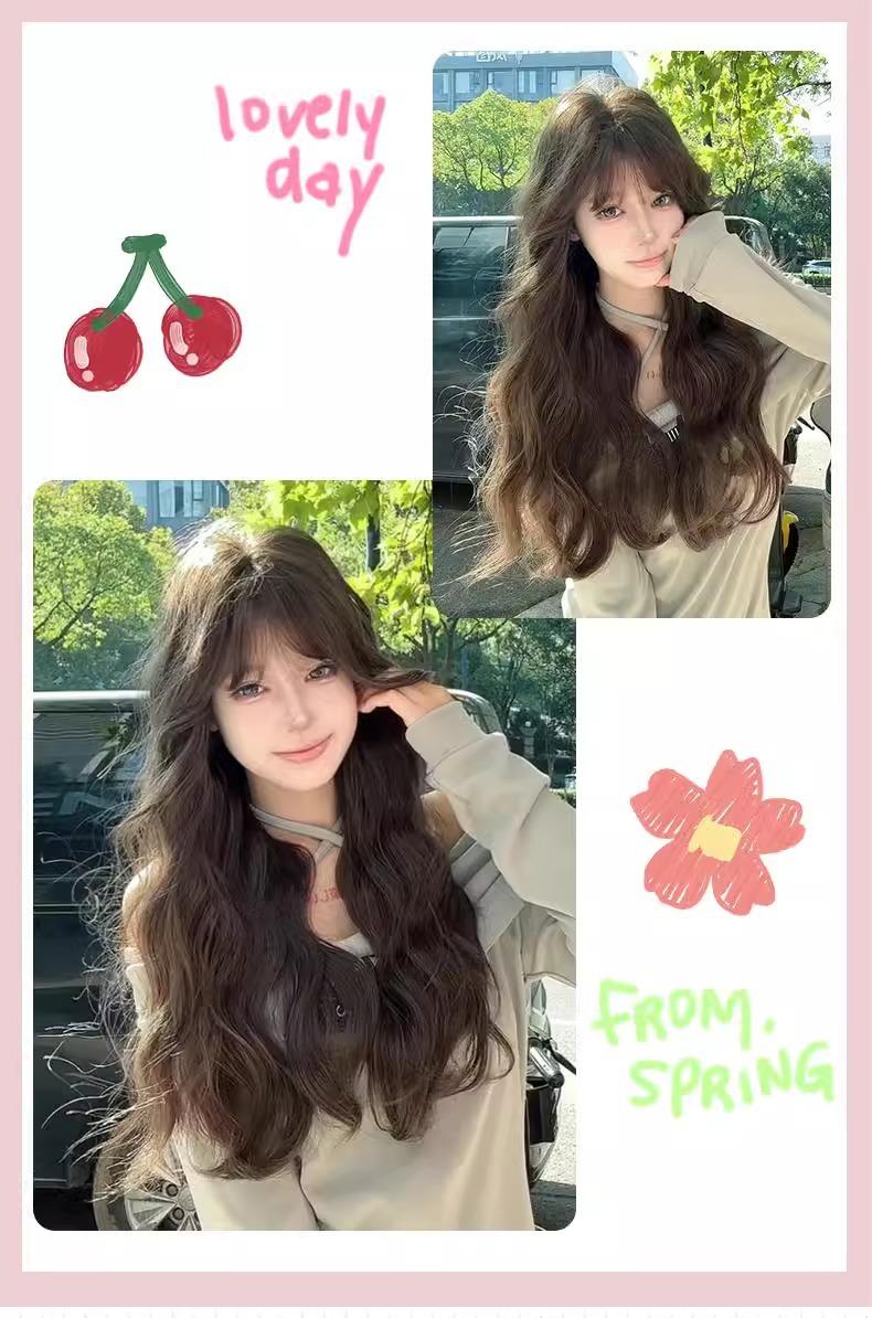 [Egg roll] peruca feminina onda rolo moda temperamento lolita rede peruca vermelha cobertura total da cabeça redução de idade