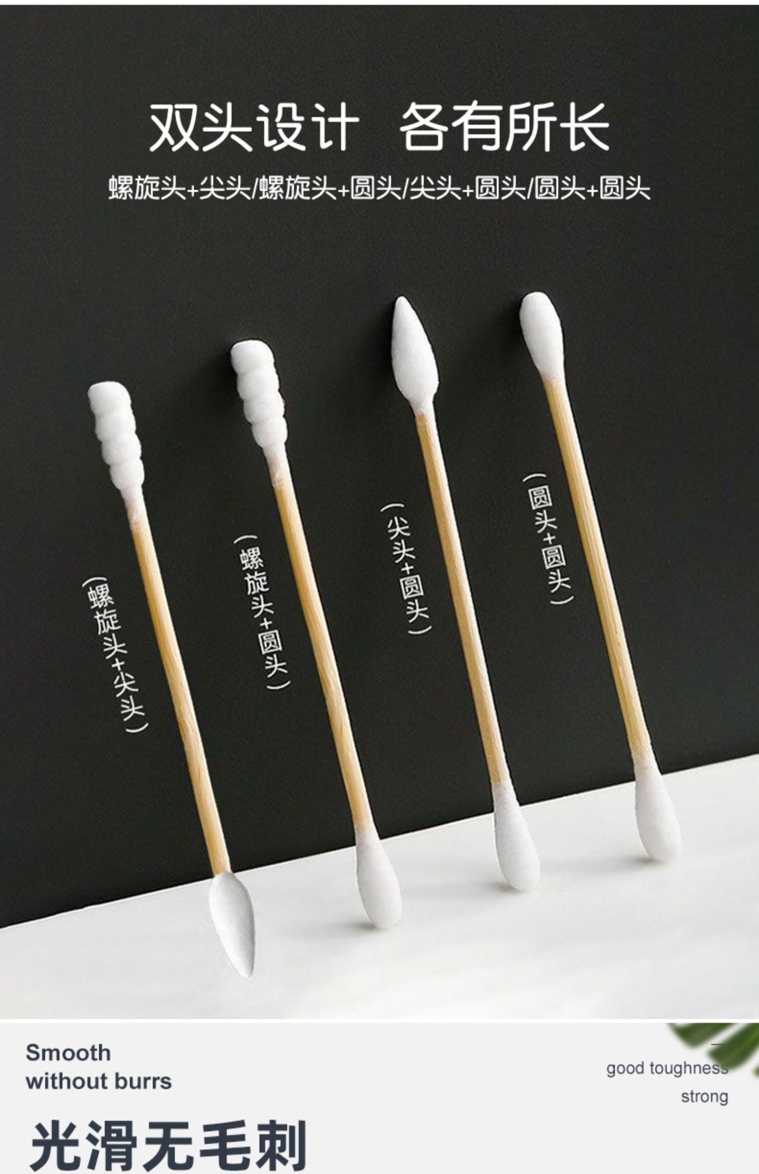 Cotonete de duas cabeças com maquiagem descartável cotonete sanitário pequeno cotonete fino e pontiagudo colher de escavação de madeira cotonete especial