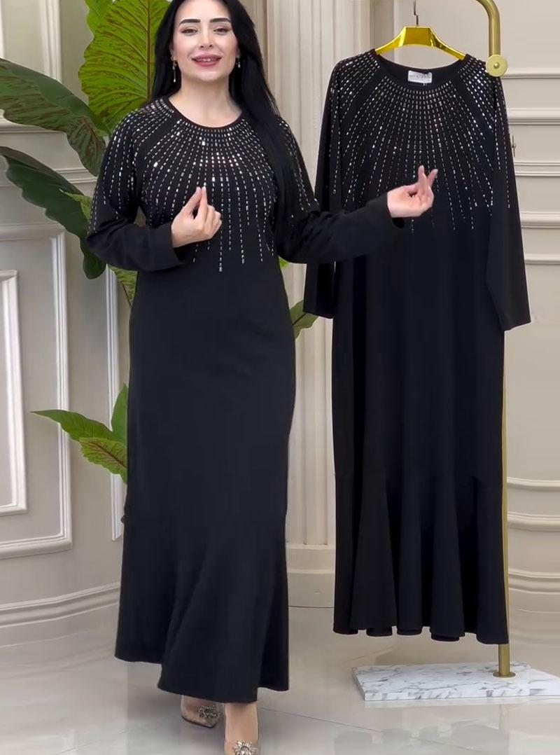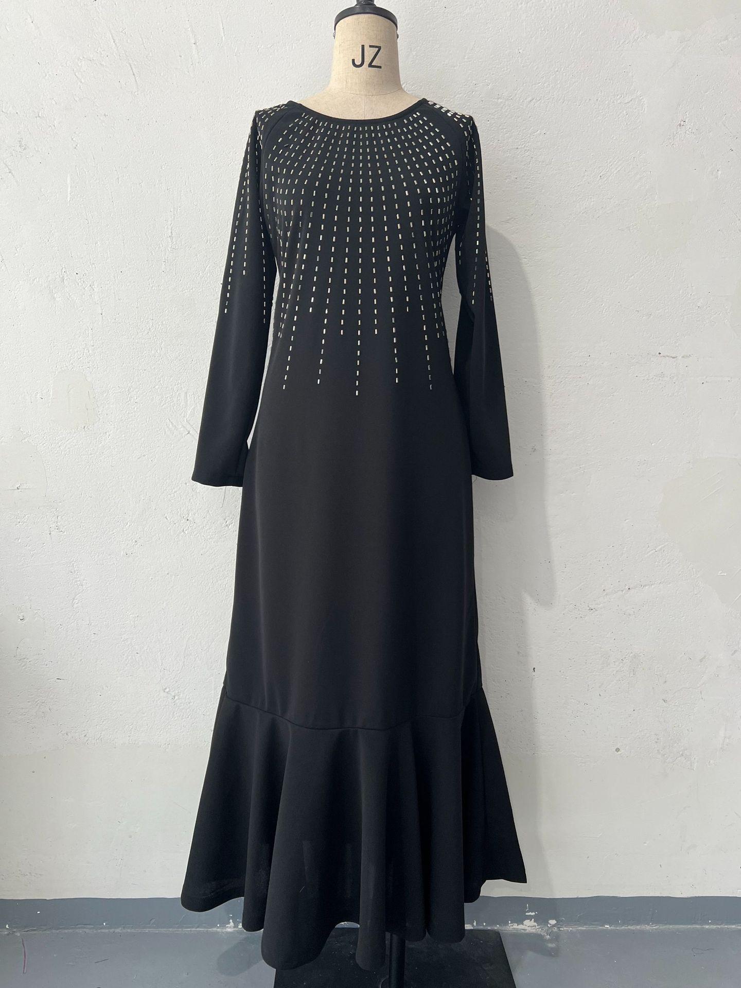 Amazon transfronteiriça 2024 Europa e Estados Unidos outono nova moda gola redonda cor sólida manga comprida vestido vintage fino