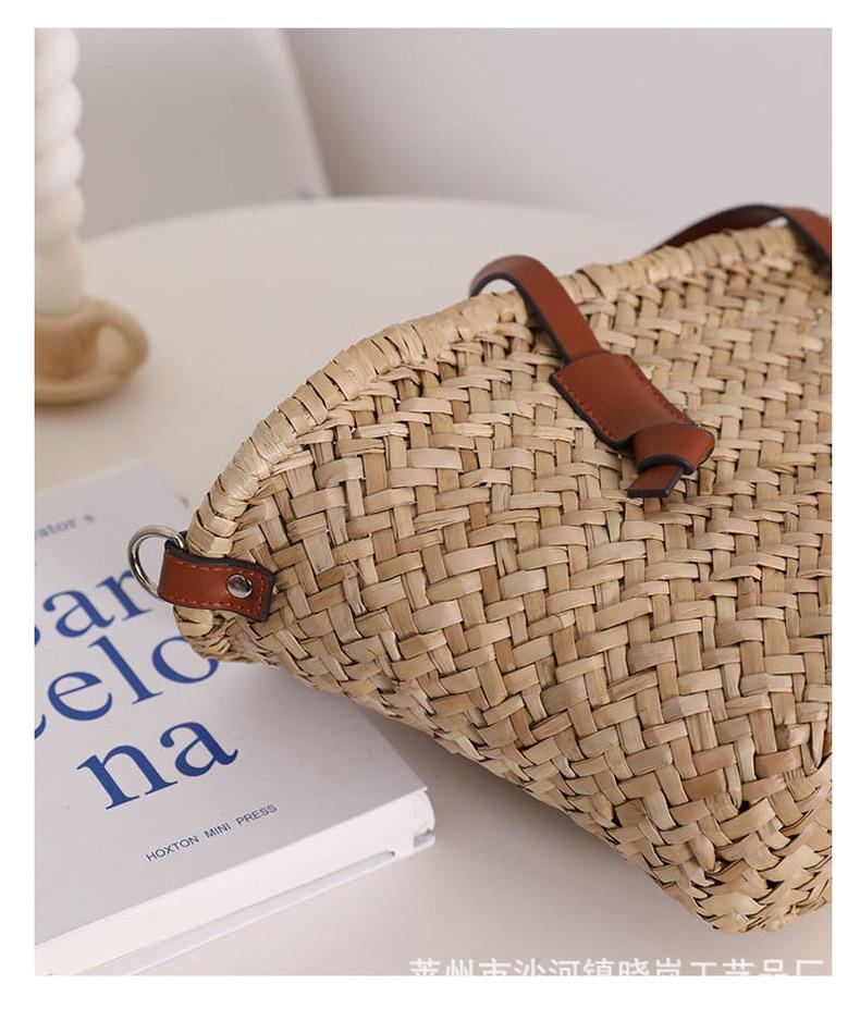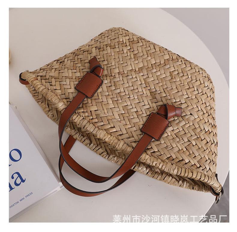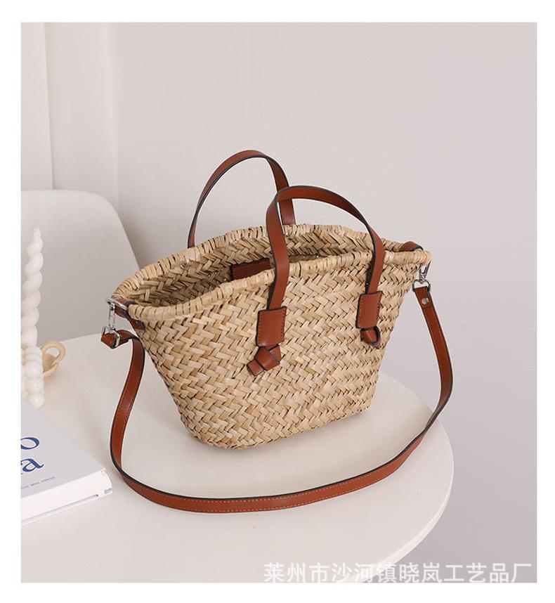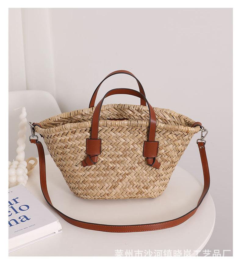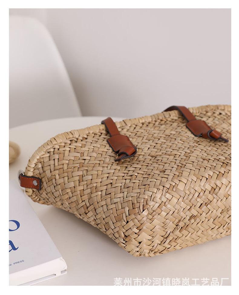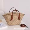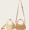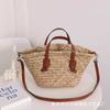 Bolsa de Ombro de Palha Tecida de Grande Capacidade, Bolsa de Praia Estilo Férias, Bolsa Feminina de Palha Natural, Bolsa Baguete Simples
