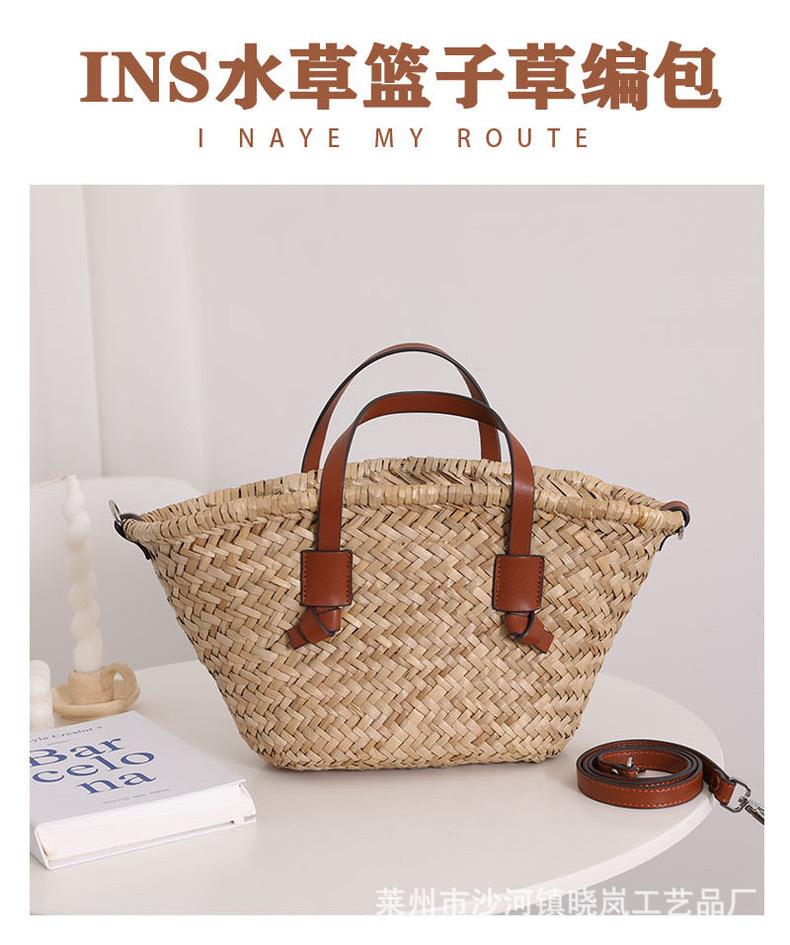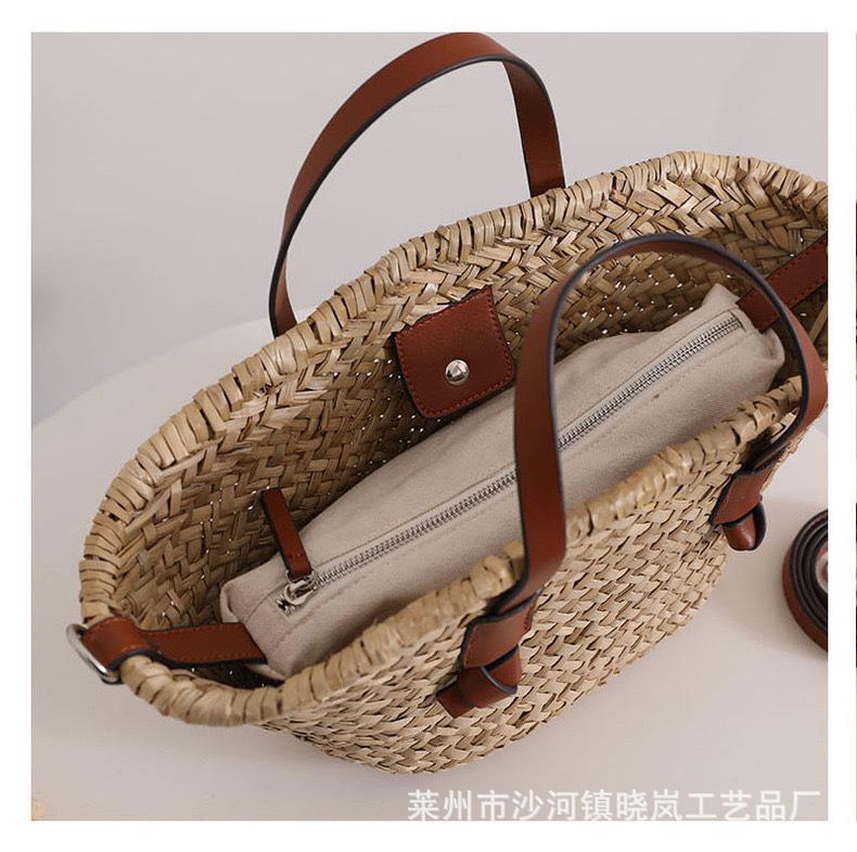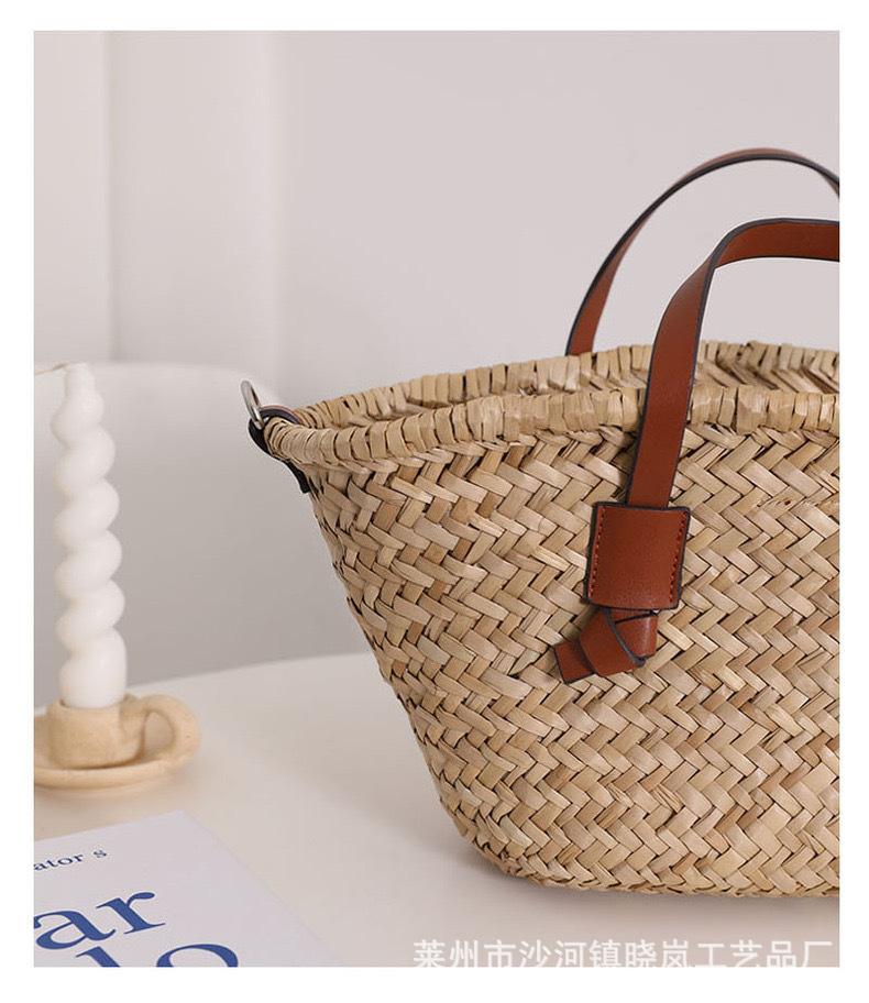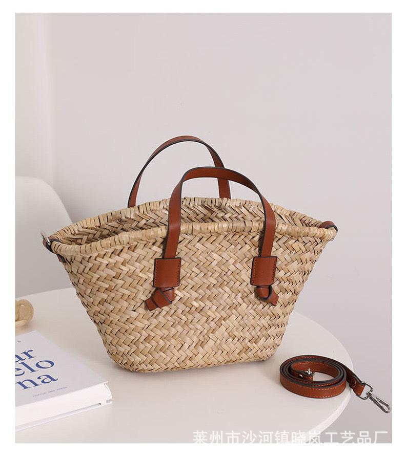 Bolsa de Ombro de Palha Tecida de Grande Capacidade, Bolsa de Praia Estilo Férias, Bolsa Feminina de Palha Natural, Bolsa Baguete Simples