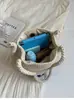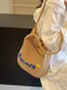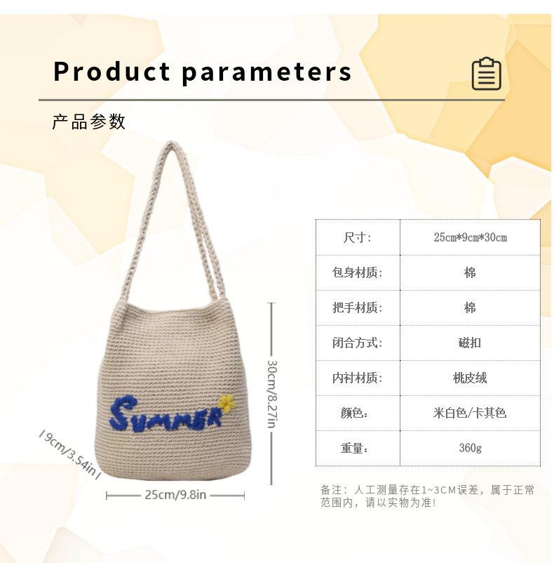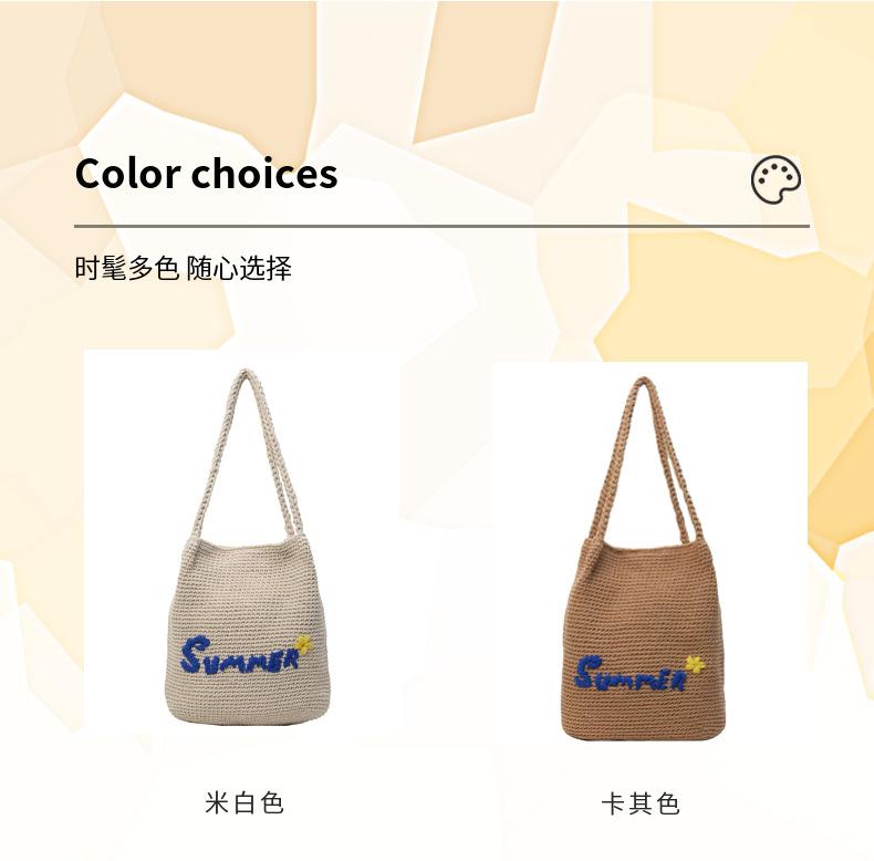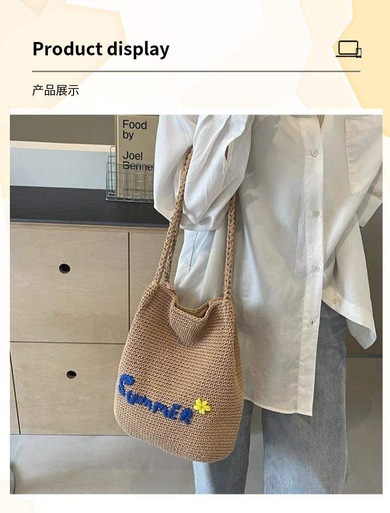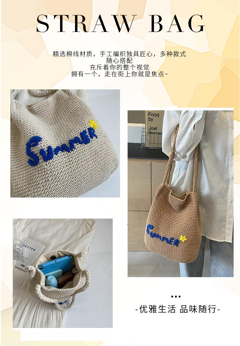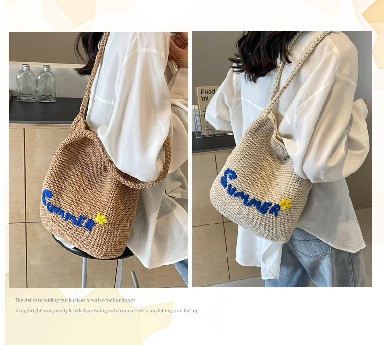 Bolsa de Palha de Algodão Bordada com Letras Nova Bolsa Tecida à Mão Bolsa de Praia de Férias de Grande Capacidade para Mulheres Bolsa de Ombro para Mulheres