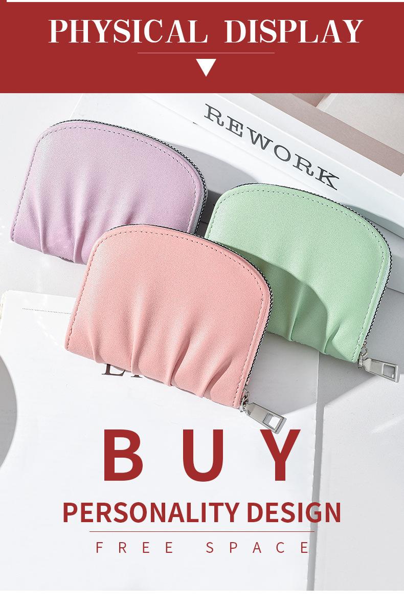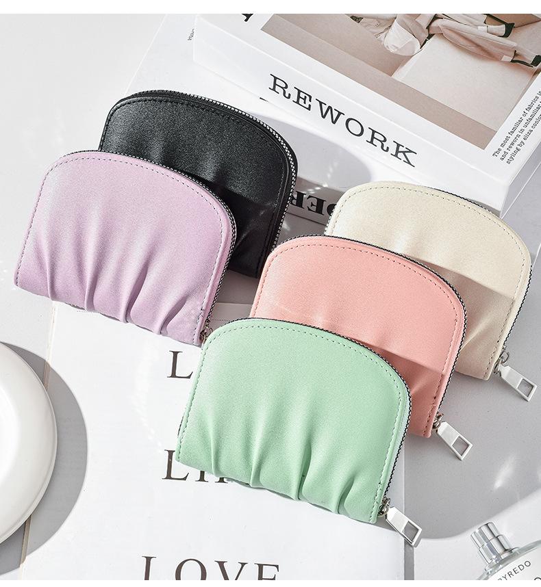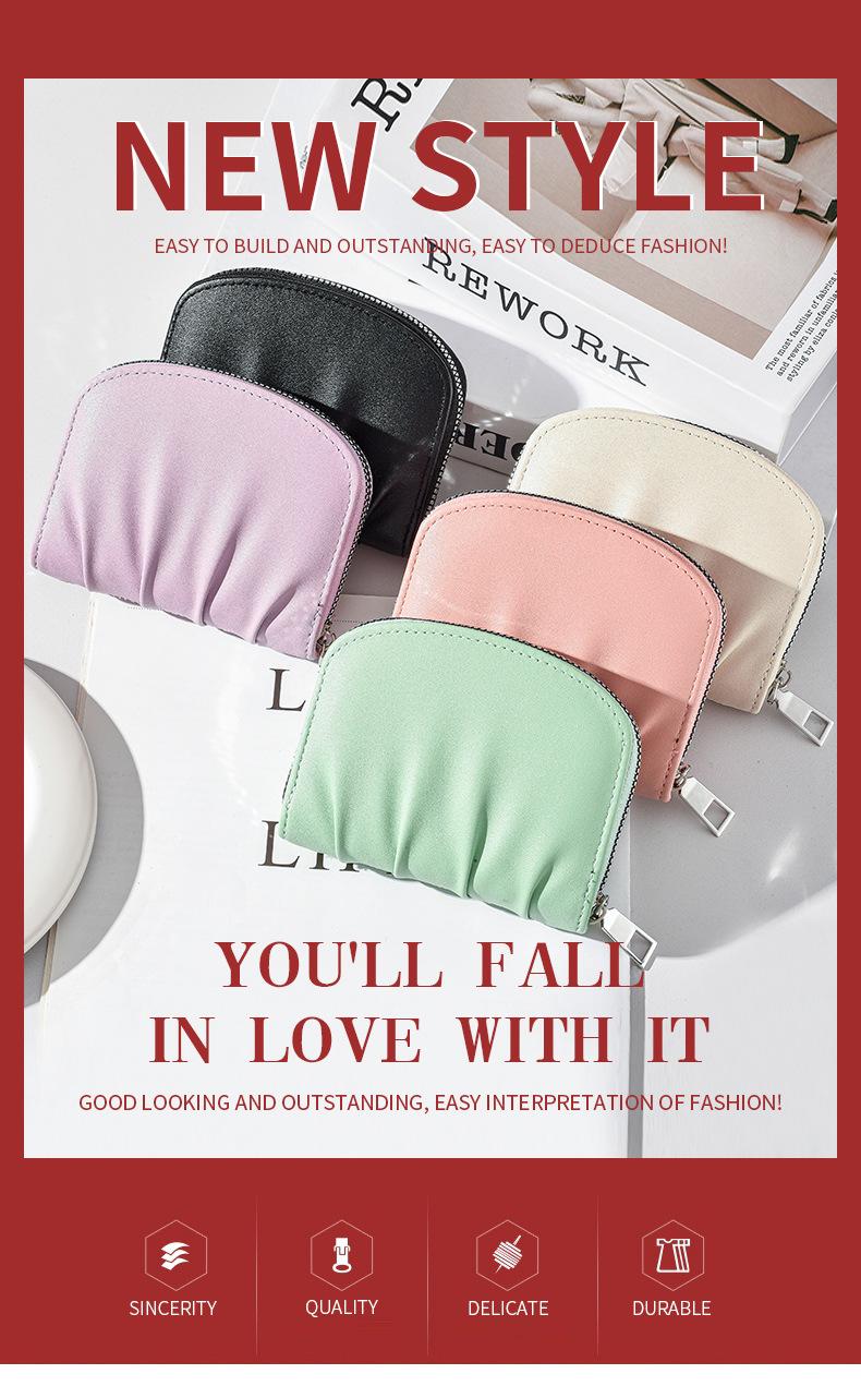 Carteira Feminina Plissada de Alta Qualidade Carteira Feminina Novo Estilo Simples Cor Sólida Bolsa de Moedas Ins Carteira Feminina