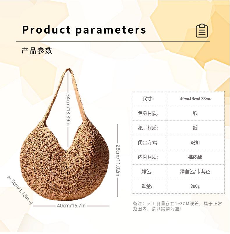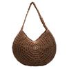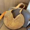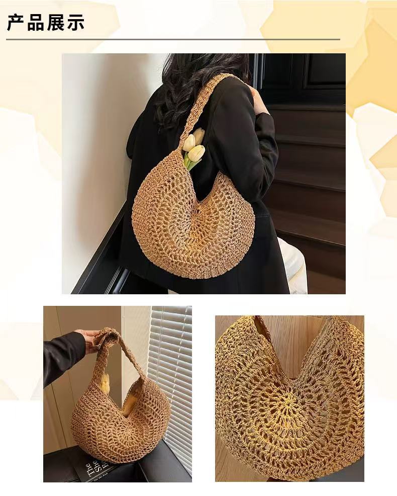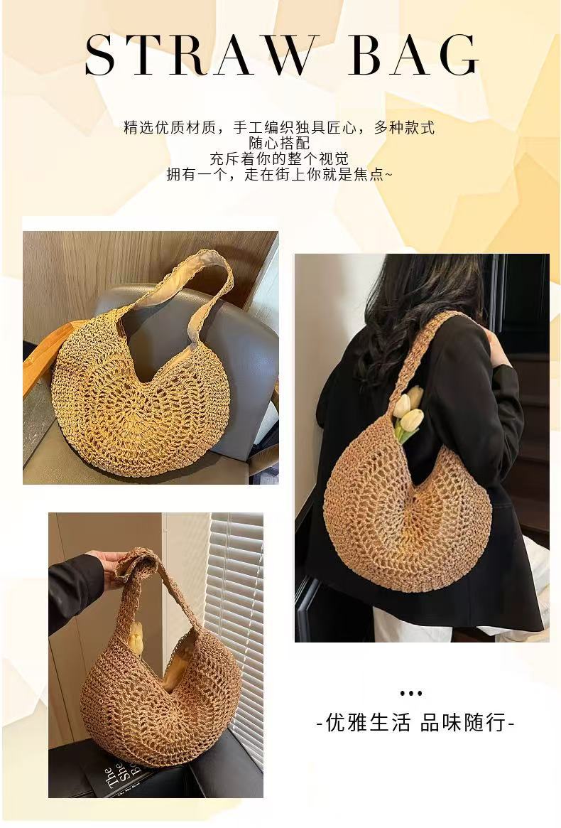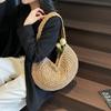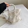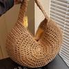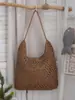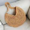 Nova Bolsa de Palha Vazada de Verão Versátil Bolsa Artesanal de Grande Capacidade Bolsa de Ombro Simples Bolsa de Praia para Férias Feminina