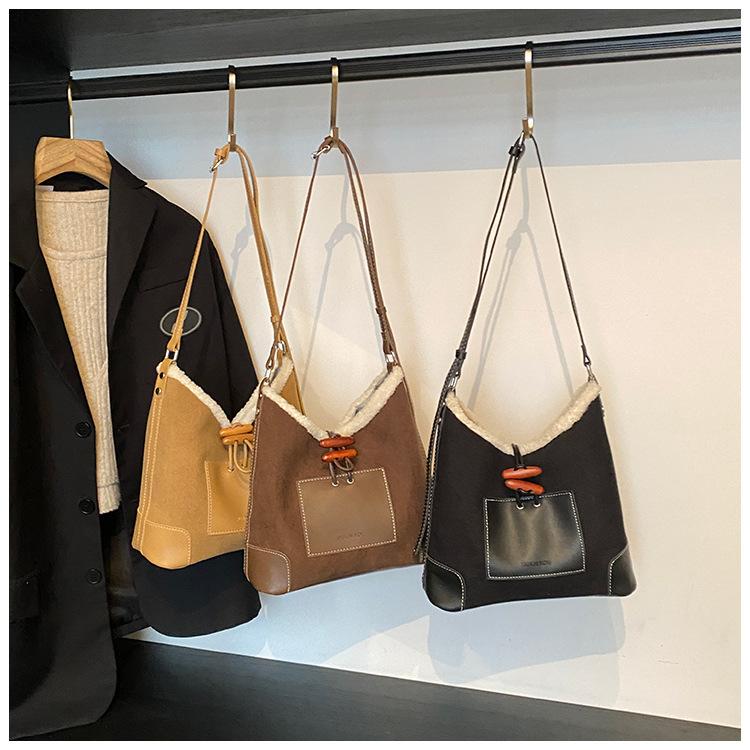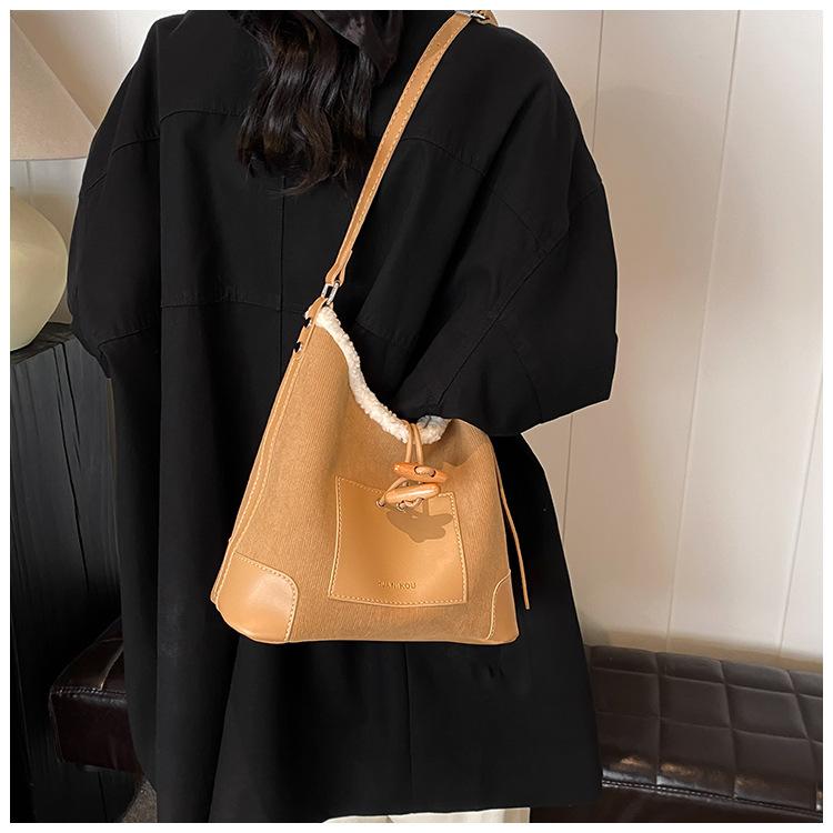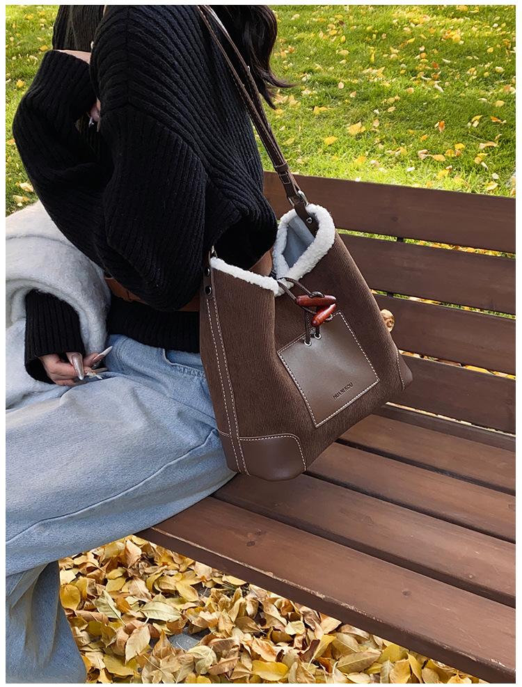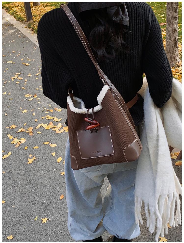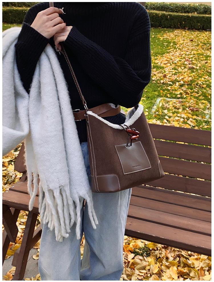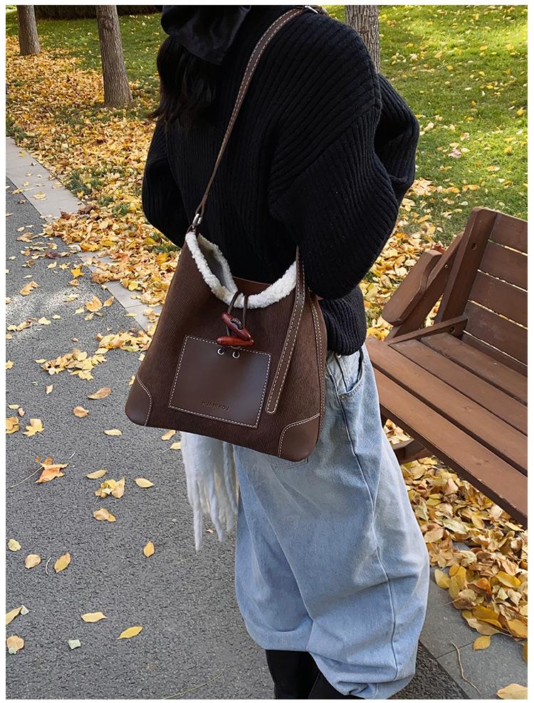 Bolsa Retrô Transfronteiriça para Pendular Feminina 2025 Nova Outono e Inverno Versátil Bolsa Transversal Bolsa de Ombro da Moda Bolsa Balde