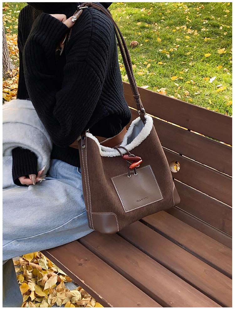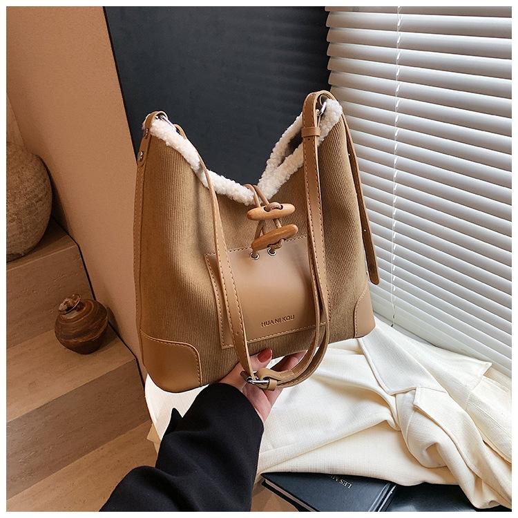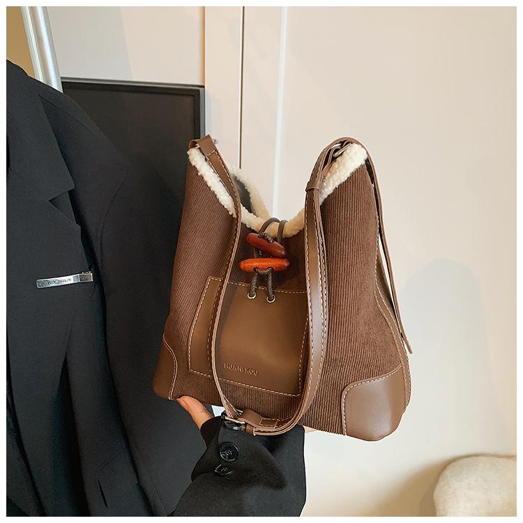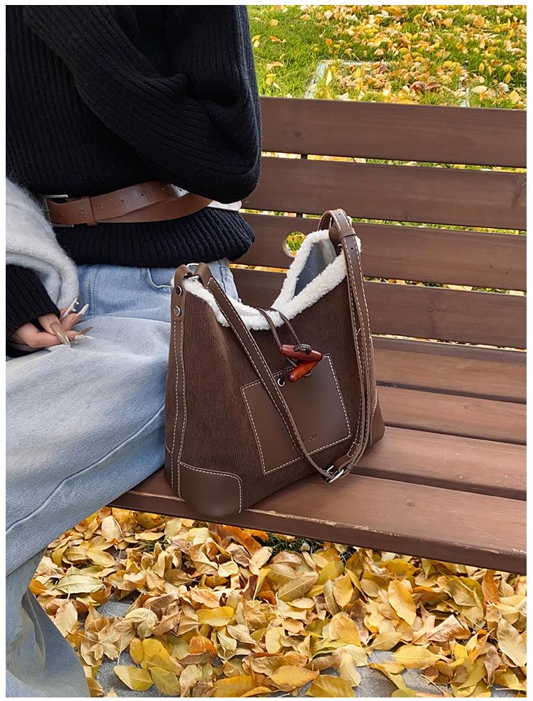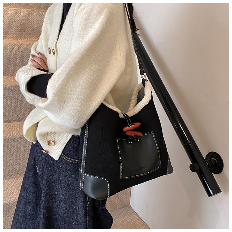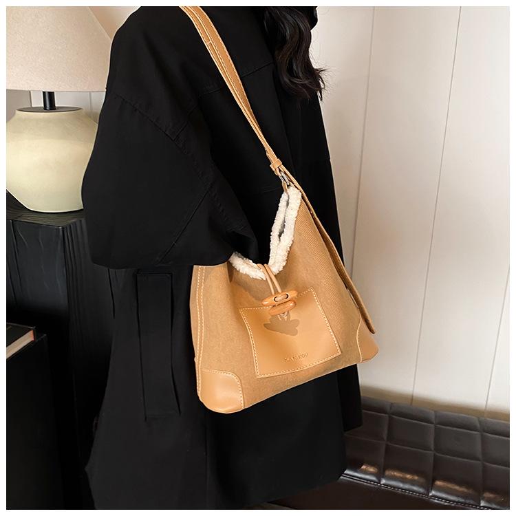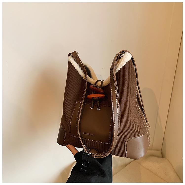Bolsa Retrô Transfronteiriça para Pendular Feminina 2025 Nova Outono e Inverno Versátil Bolsa Transversal Bolsa de Ombro da Moda Bolsa Balde