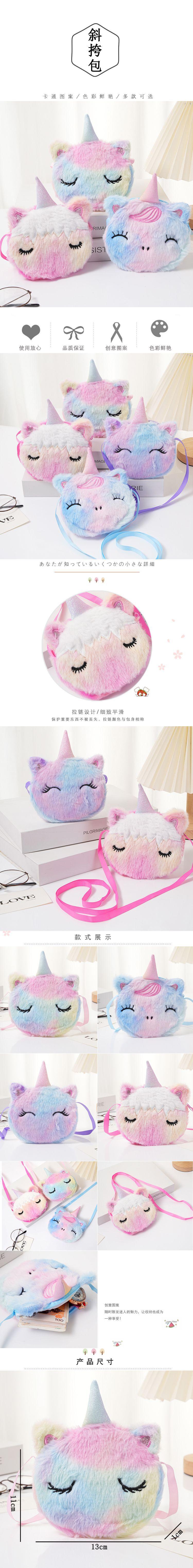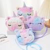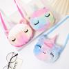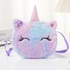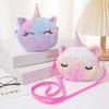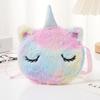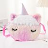 Bolsa de moedas fofa infantil transfronteiriça para meninos e meninas, bolsa de ombro transversal de unicórnio de pelúcia de desenho animado de inverno com fita redonda