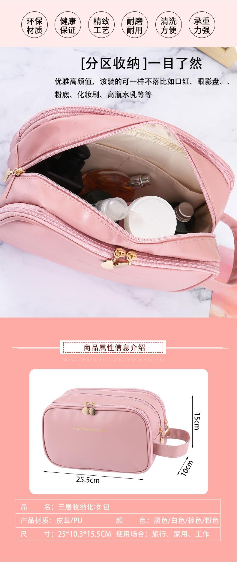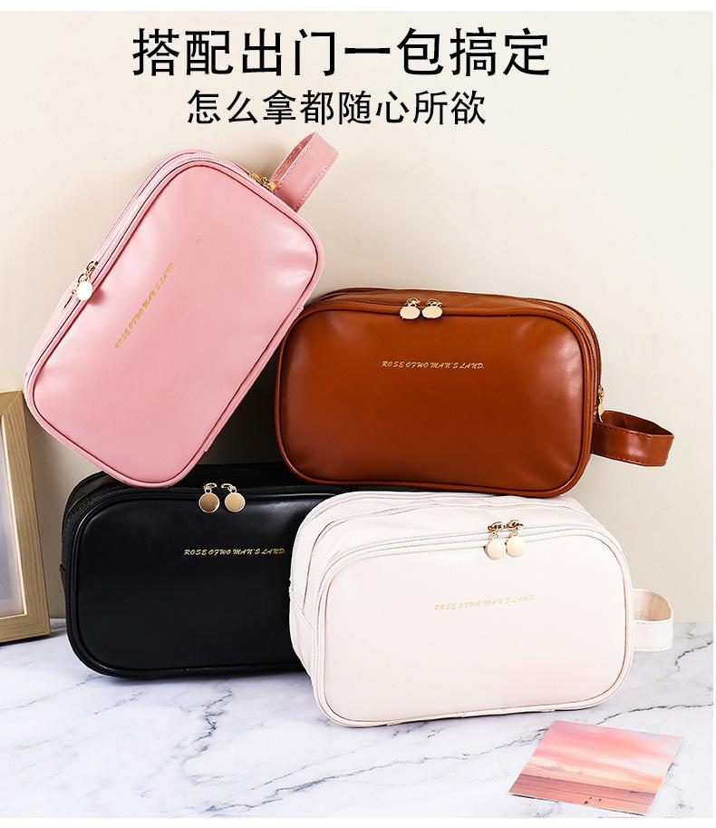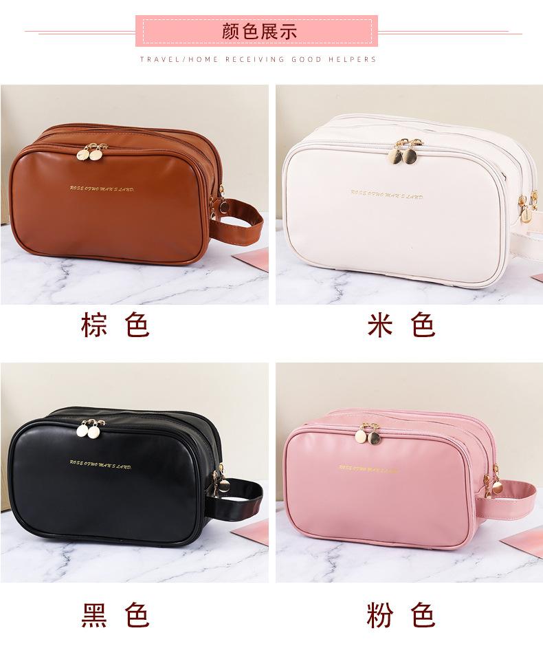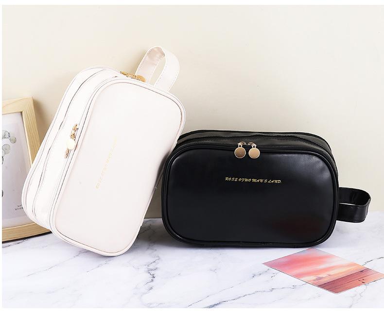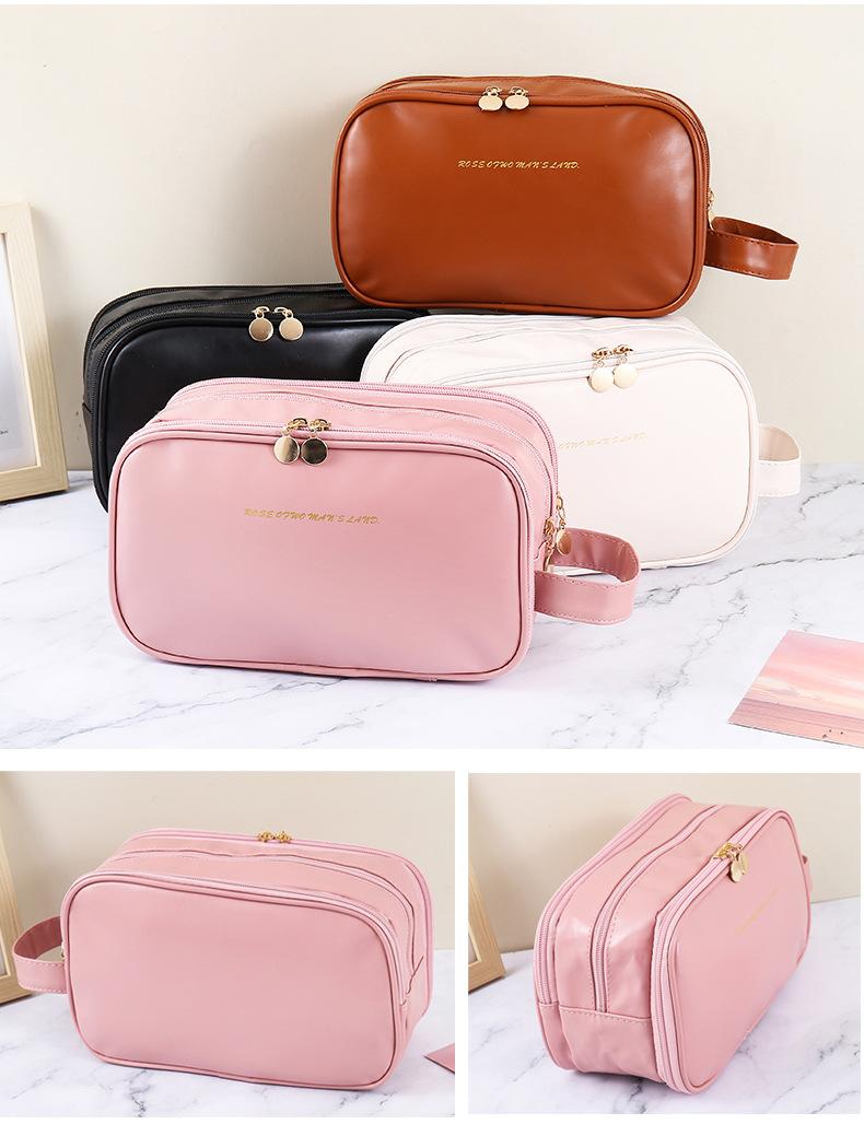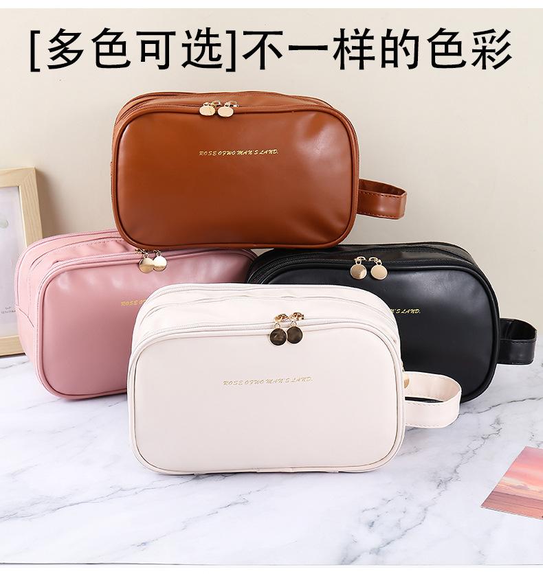 Ins Style Bolsa de cosméticos com zíper duplo Bolsa de armazenamento de viagem portátil de grande capacidade em PU Bolsa de lavagem de cosméticos de três camadas