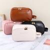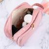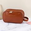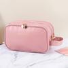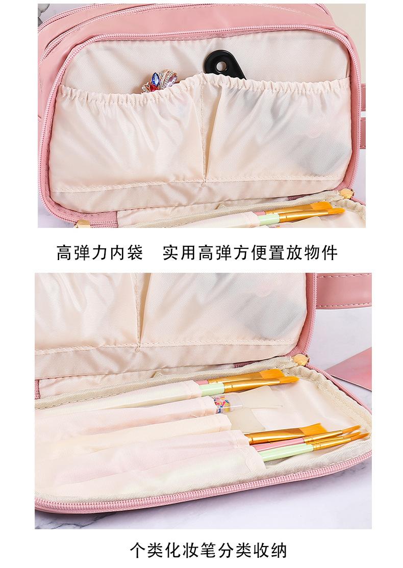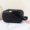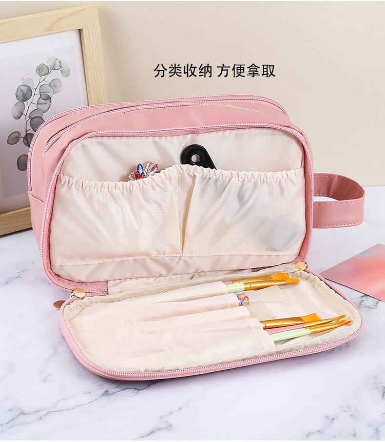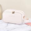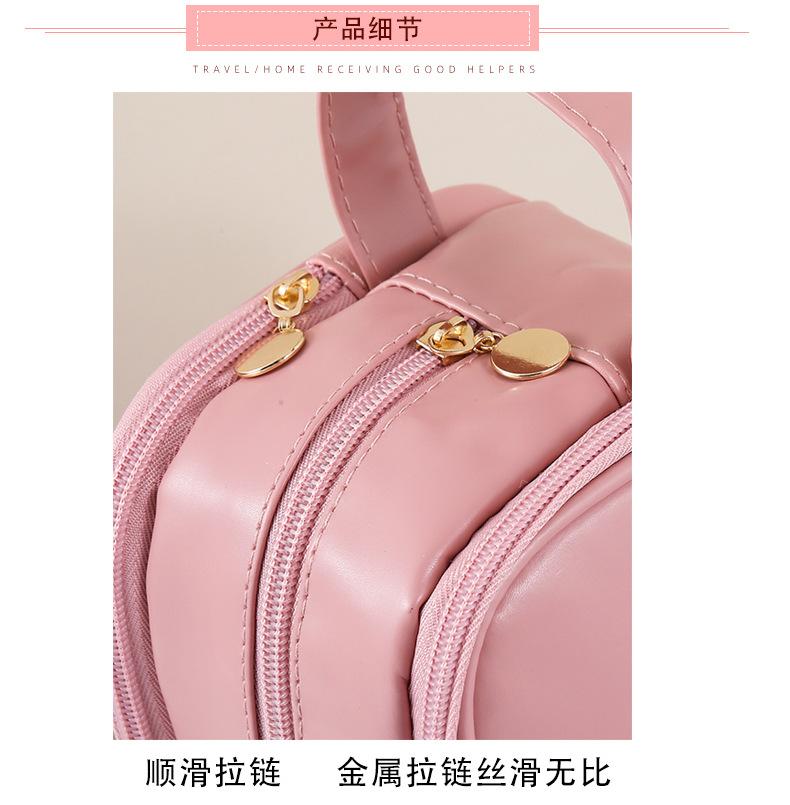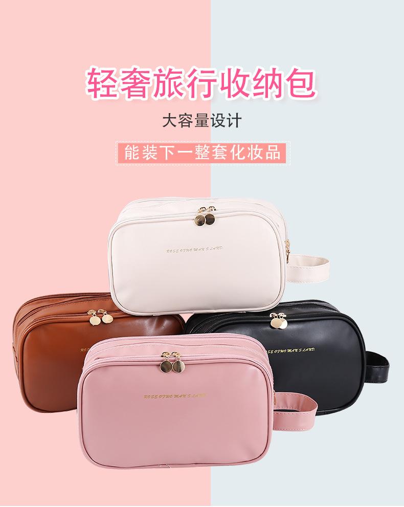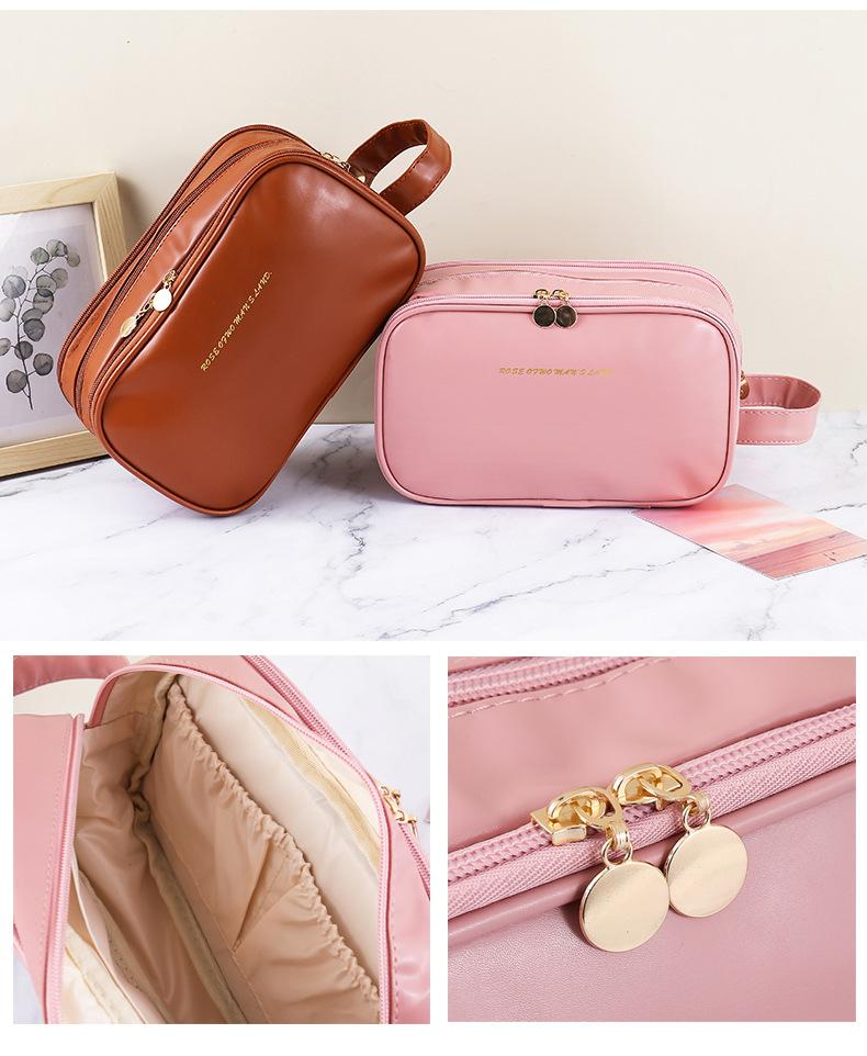 Ins Style Bolsa de cosméticos com zíper duplo Bolsa de armazenamento de viagem portátil de grande capacidade em PU Bolsa de lavagem de cosméticos de três camadas