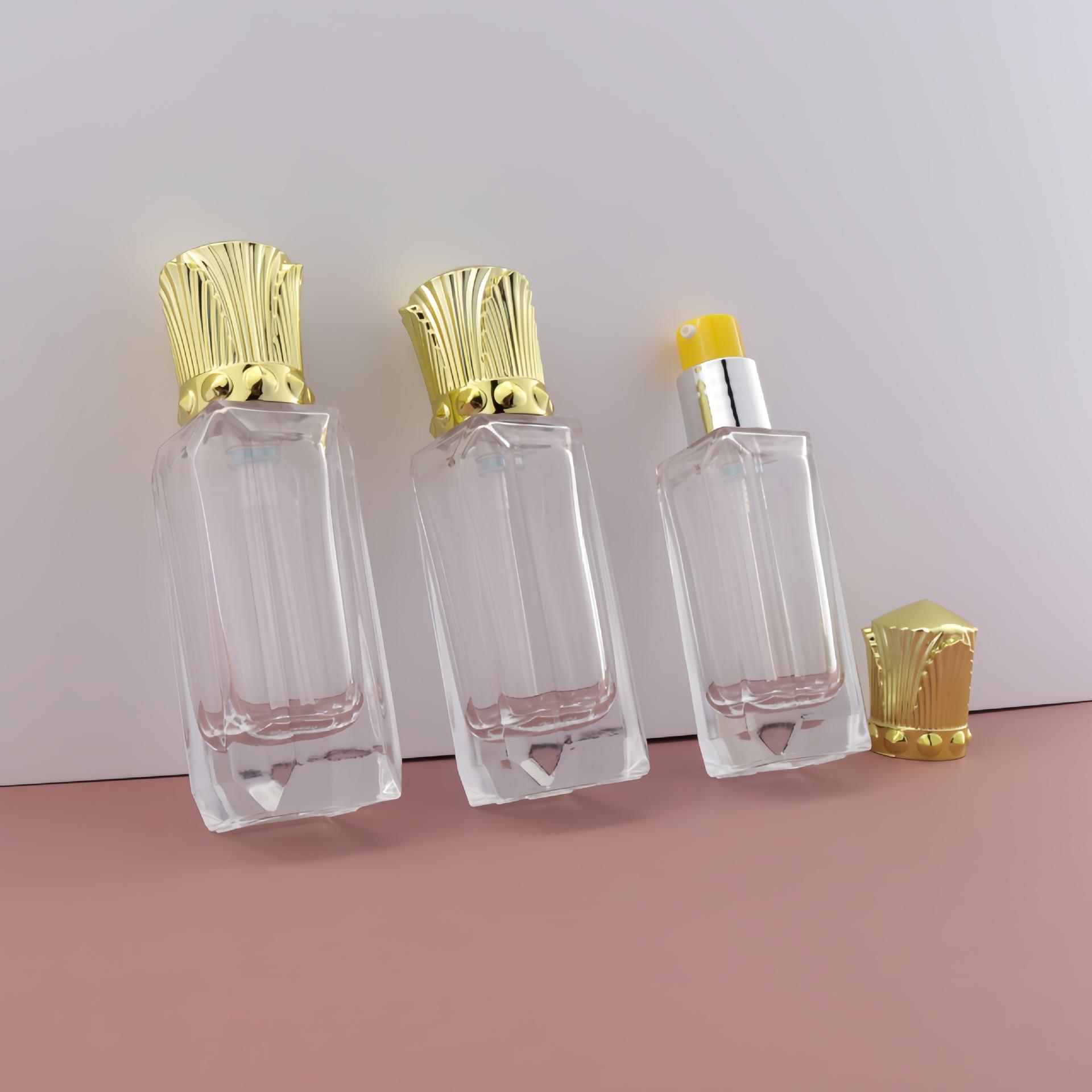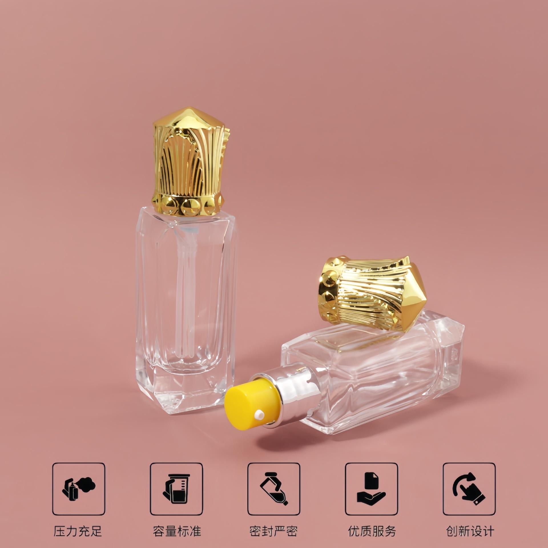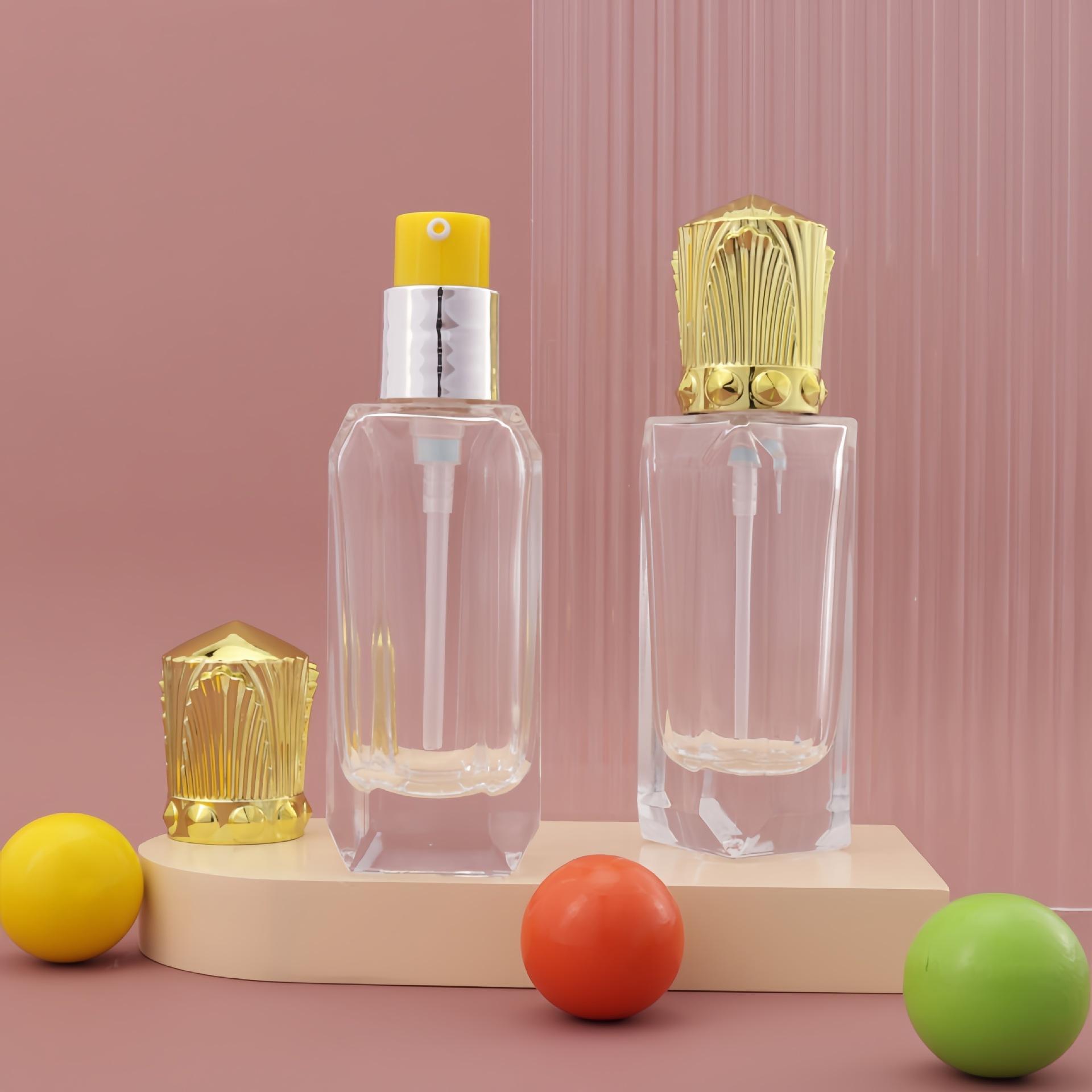 Fundação ouro transparente essência imprensa 30ml vidro vácuo loção garrafa de vidro cosmético selado seis lados