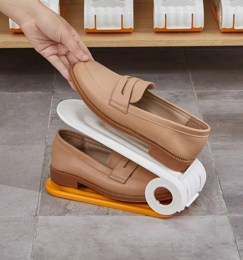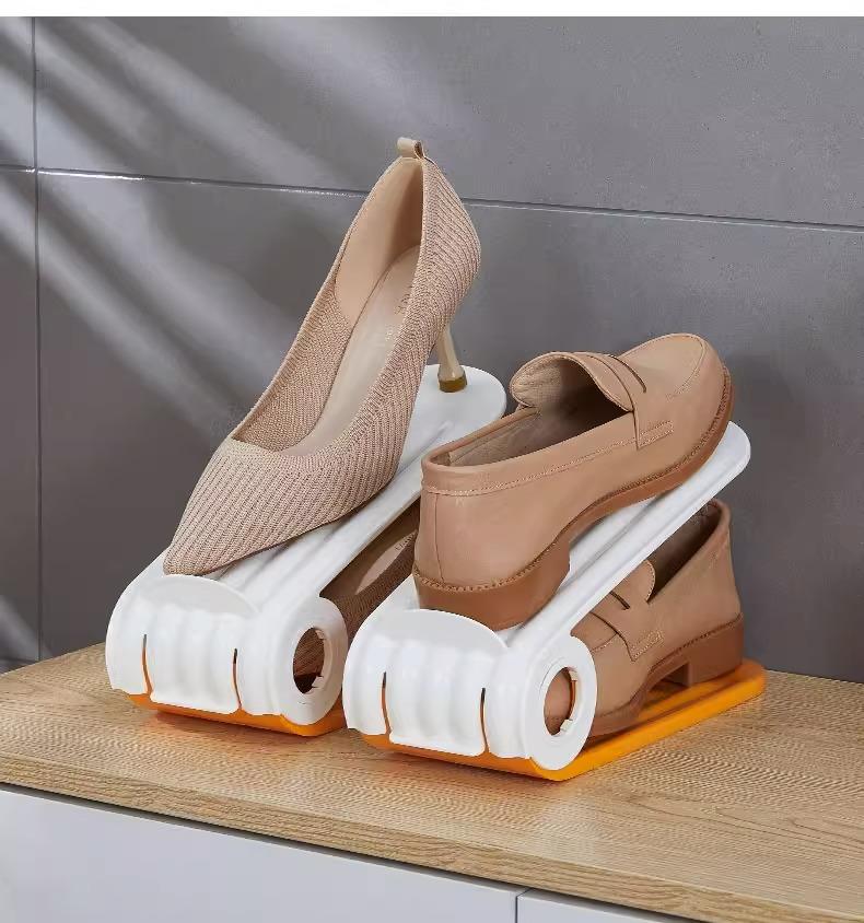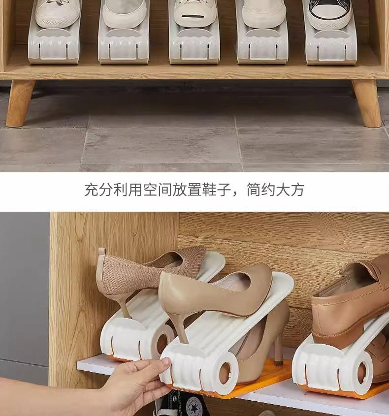 Suporte de sapato integrado com economia de espaço, prateleira de armazenamento dobrável, ajustável, simples, de camada dupla, caixa de armazenamento de sapatos domésticos