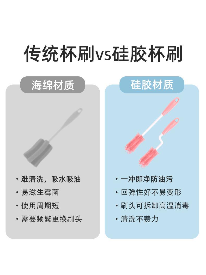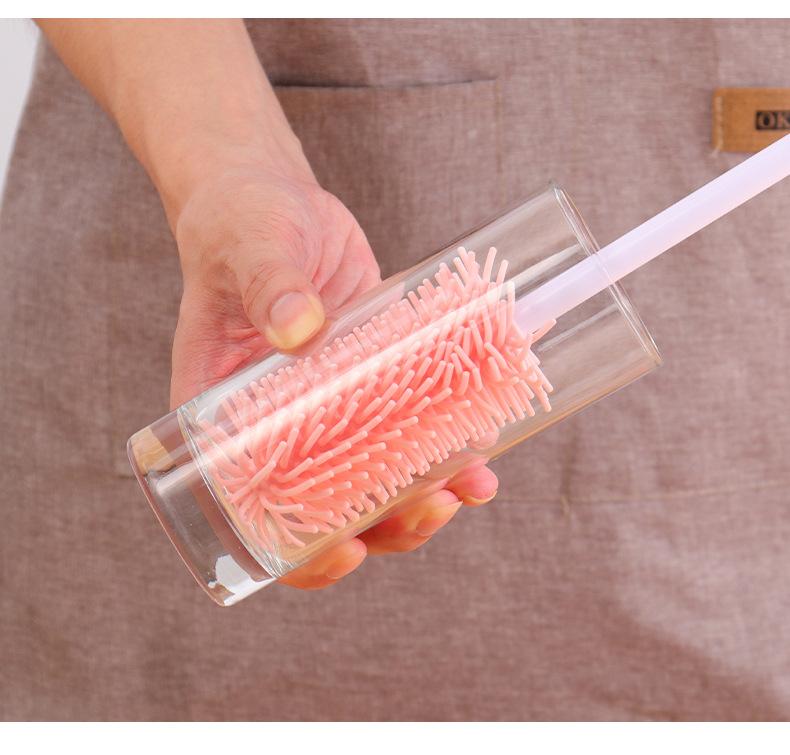 Escova de copo de cabo longo, economia de trabalho, escova de artefato de copo, água, escova de limpeza de copo, escova de garrafa de leite, sem ângulo morto, remoção de manchas de chá, escova de silicone