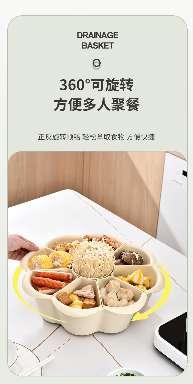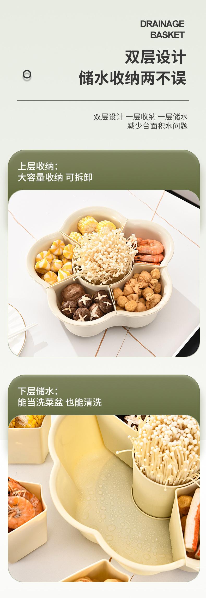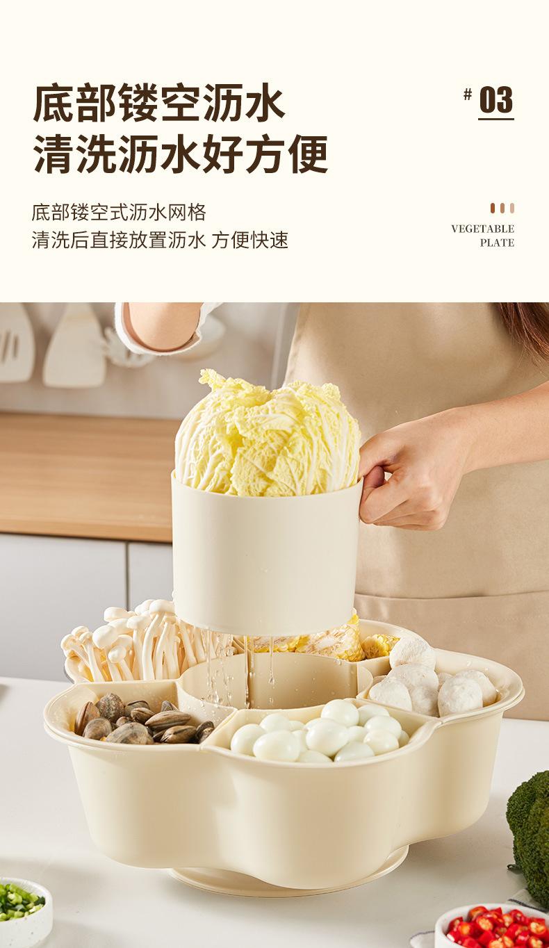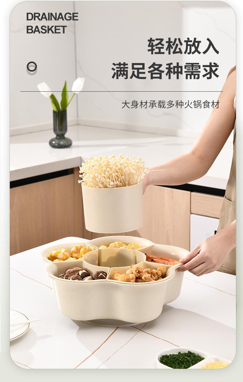 Prato de panela quente criativo giratório para uso doméstico, prato de cozinha de camada dupla, cesta de vegetais, drenagem dividida, cesta de vegetais de plástico