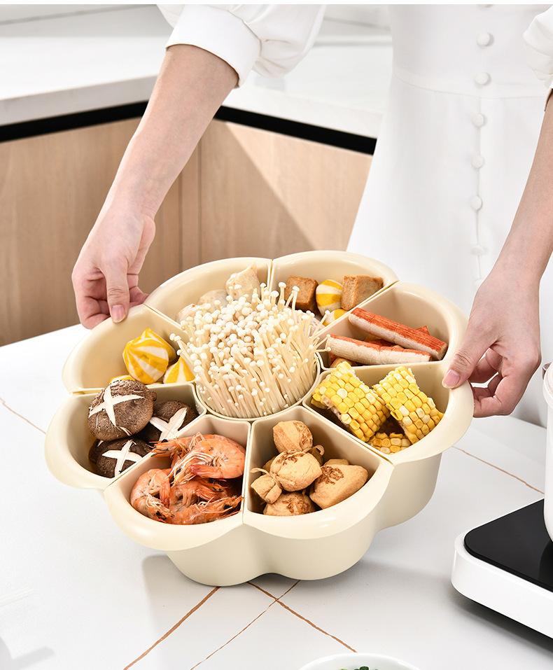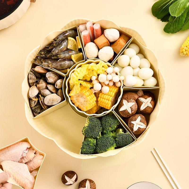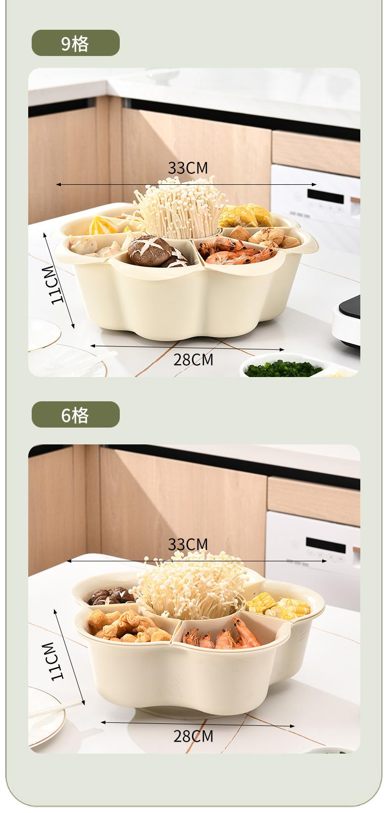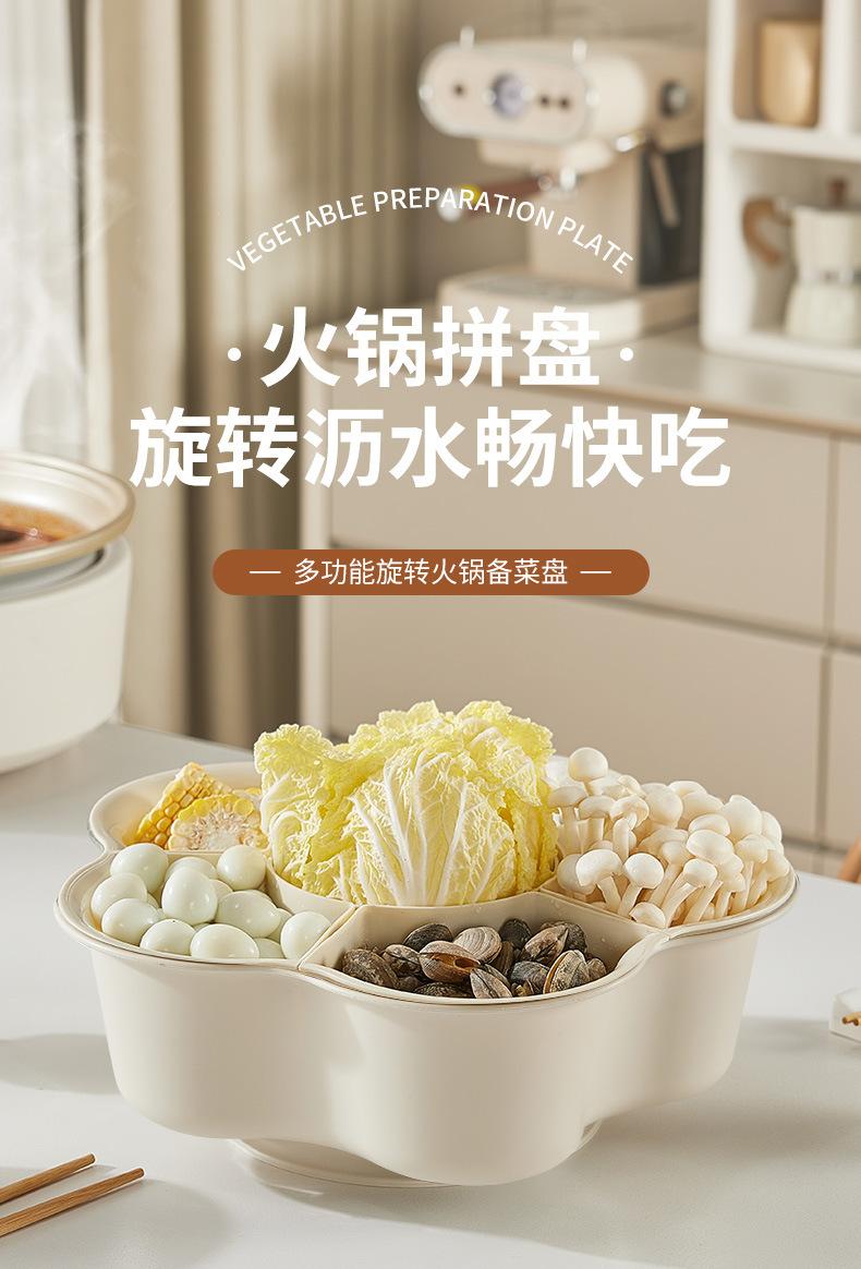 Prato de panela quente criativo giratório para uso doméstico, prato de cozinha de camada dupla, cesta de vegetais, drenagem dividida, cesta de vegetais de plástico