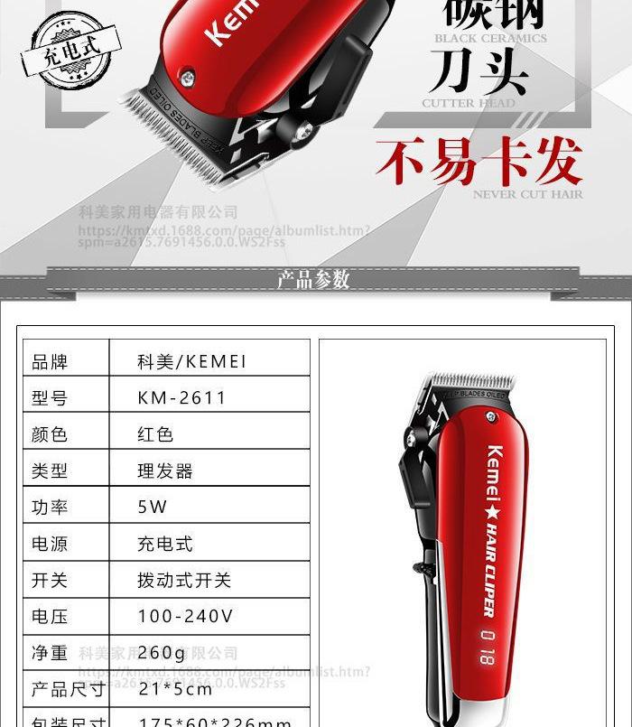 Comey KM-2611 máquina de cortar cabelo elétrica cabeça de barbear de alta potência máquina de cortar cabelo a óleo máquina de cortar cabelo elétrica transfronteiriça salão de cabeleireiro
