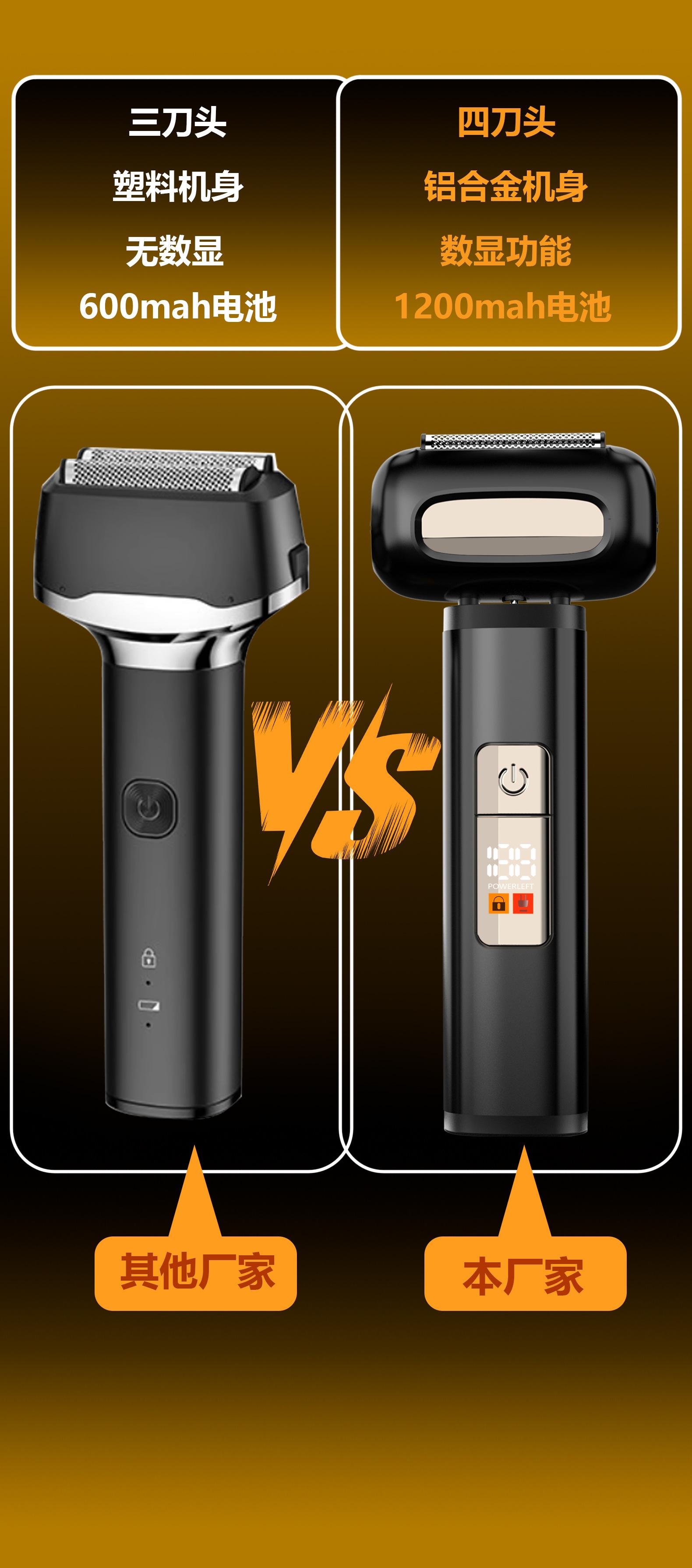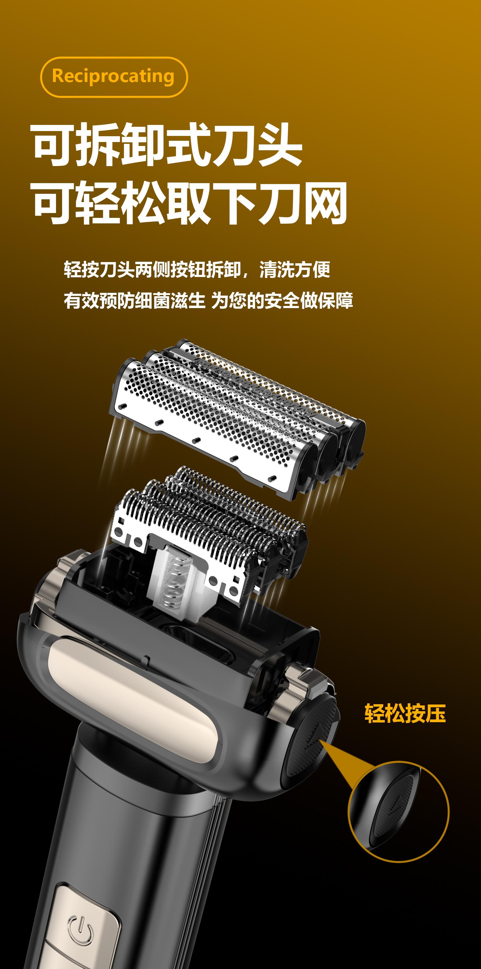 Barbeador Elétrico Recíproco de Quatro Lâminas Visor Digital Transfronteiriço Barbeador de Barba Recarregável Lavável para Corpo Inteiro