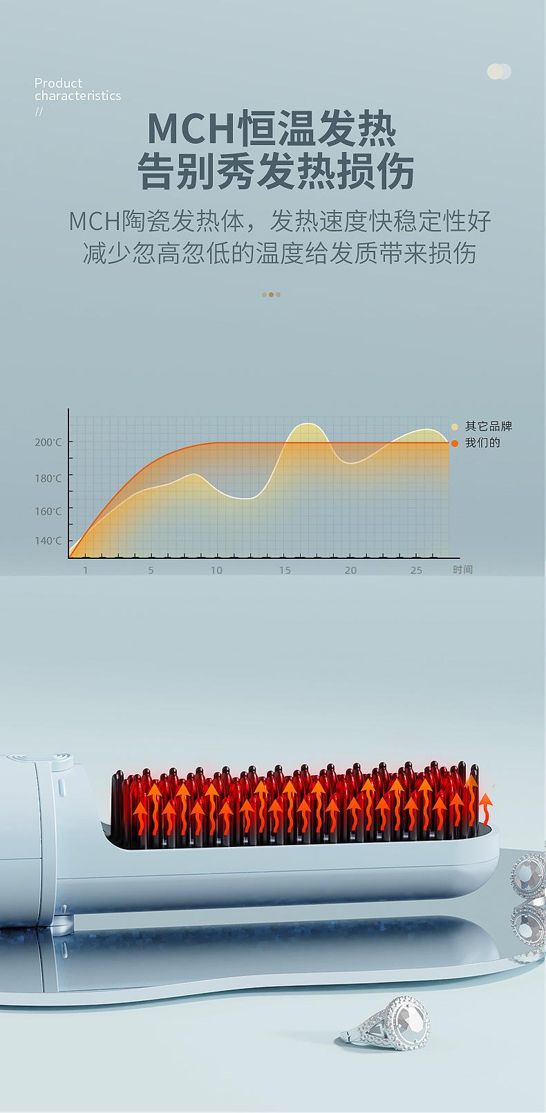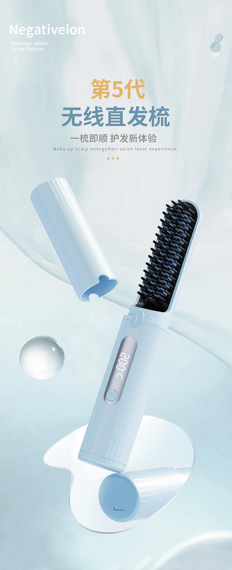 Novo Pente Alisador de Cabelo Sem Fio Recarregável Mini Prancha Alisadora Portátil Íon Negativo Não Danifica o Cabelo Pente Elétrico Alisador de Cabelo Transfronteiriço