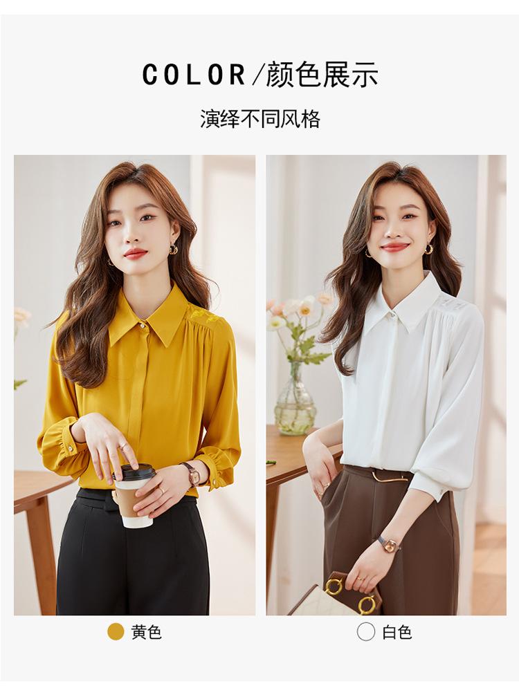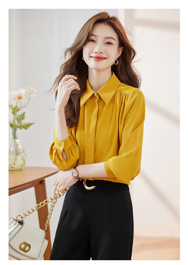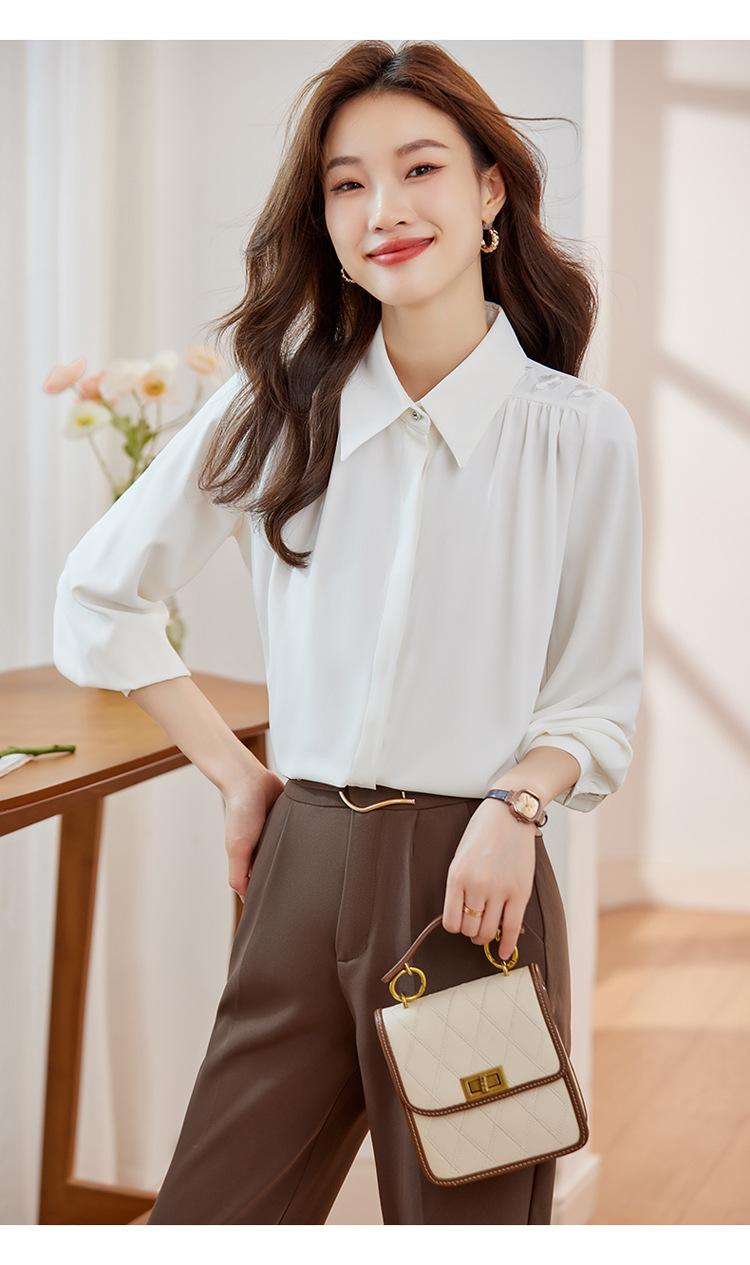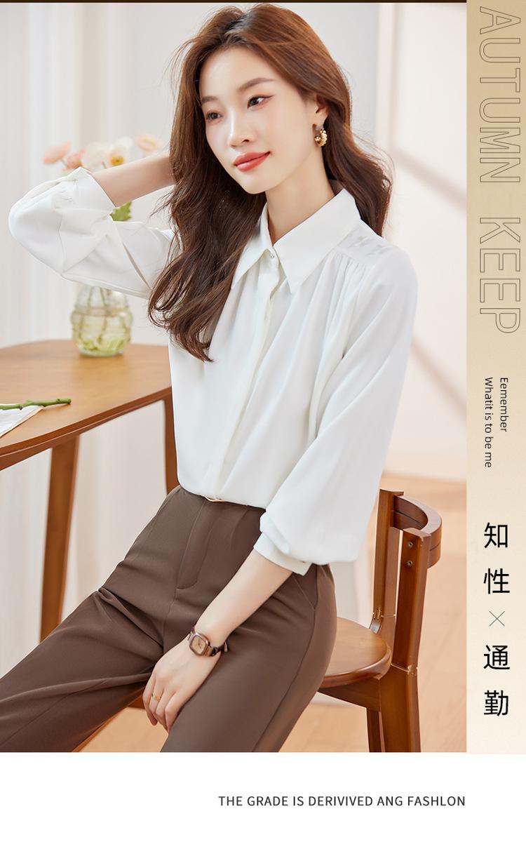Compre Camisa de chiffon de manga comprida feminina outono 2023 novo estilo profissional viajante top pequena elegante camisa solta no atacado no Joom.pro