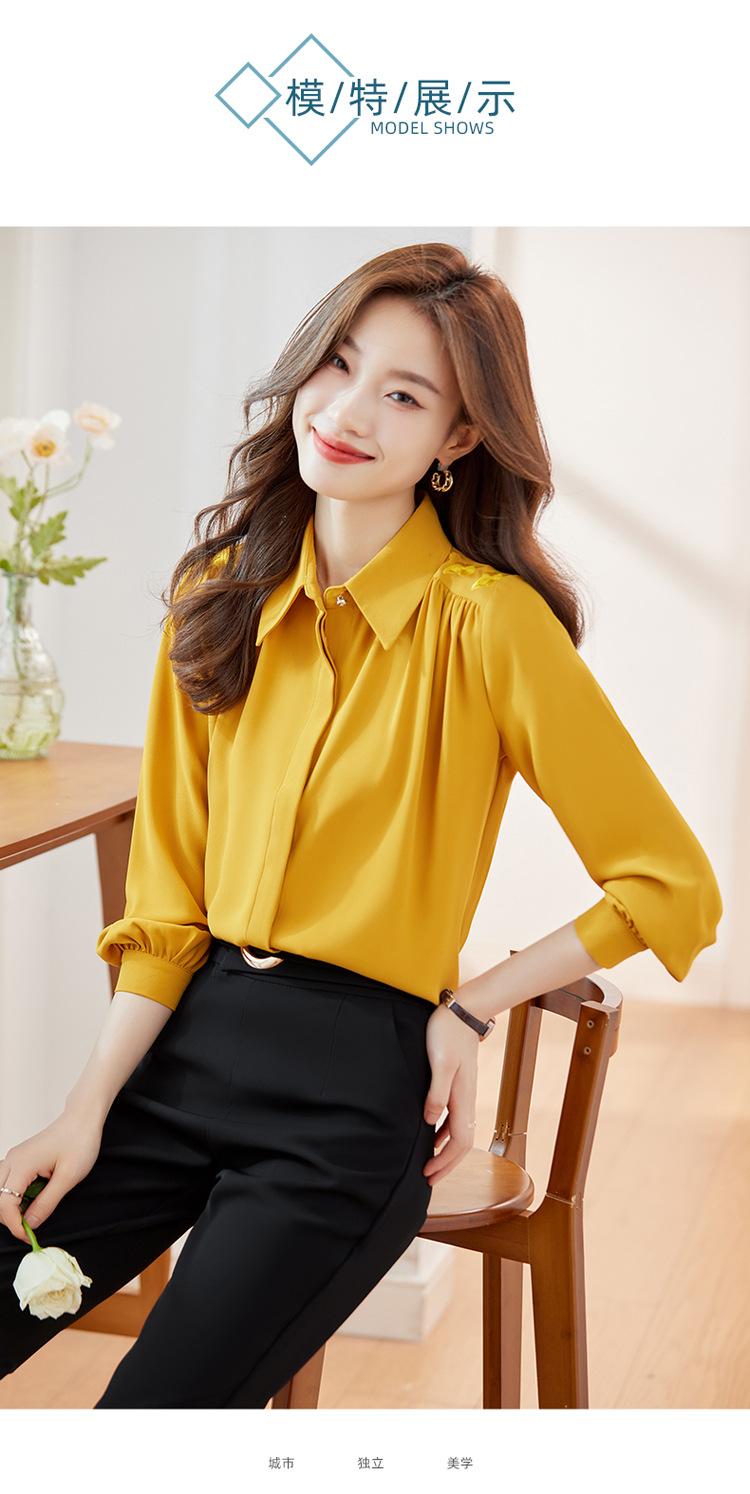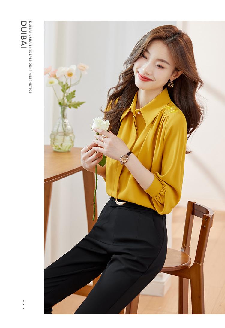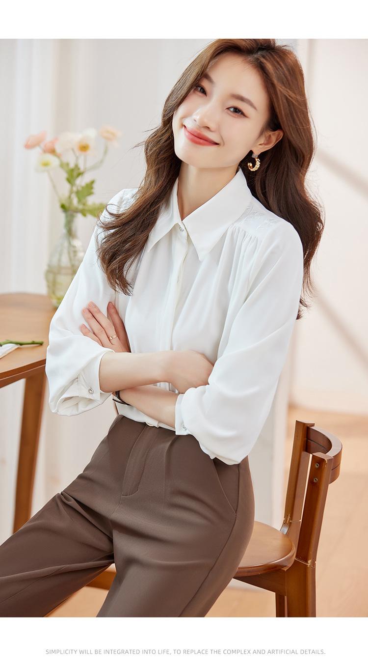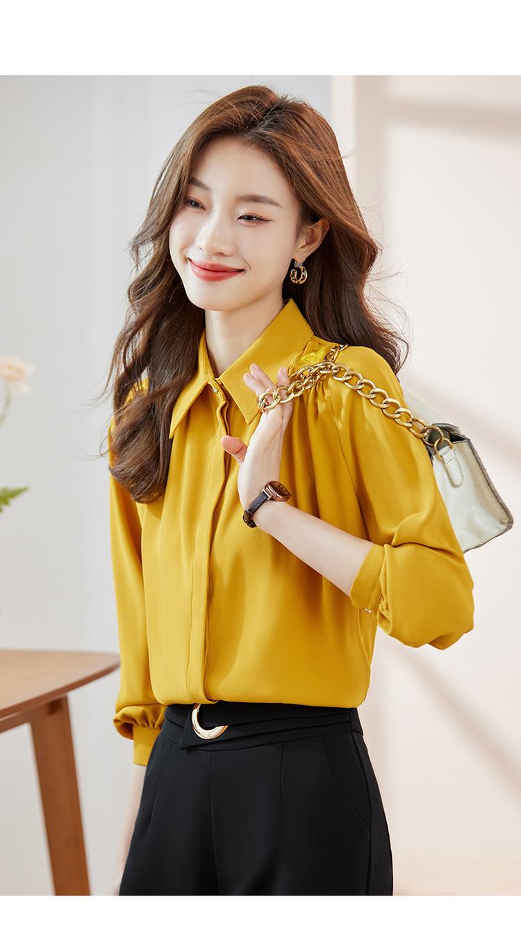 Compre Camisa de chiffon de manga comprida feminina outono 2023 novo estilo profissional viajante top pequena elegante camisa solta no atacado no Joom.pro