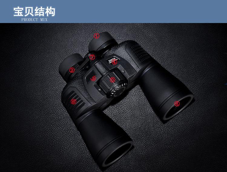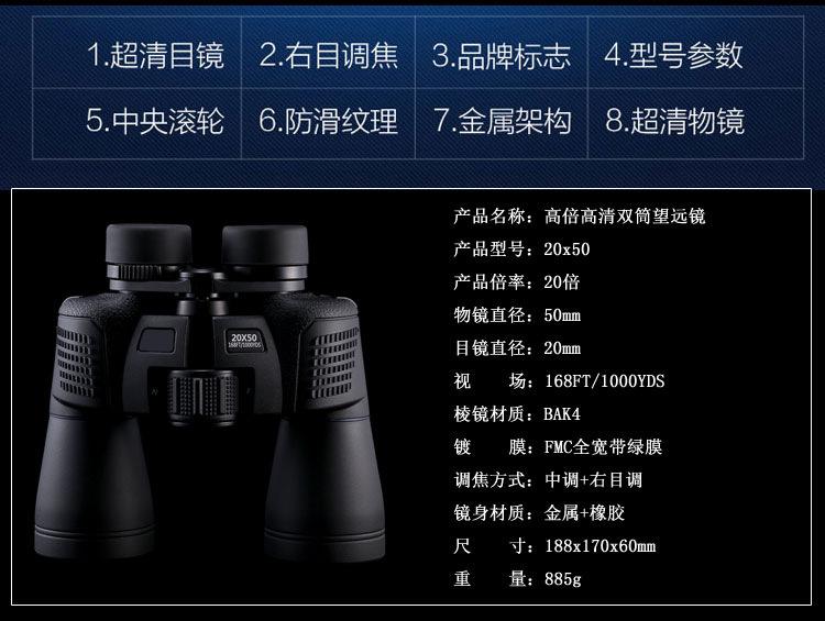 Filme verde atualizado 20X50 Visão noturna com pouca luz Alta definição Alta potência Grande angular Jogo de bola de concerto Binóculos para caça de abelhas