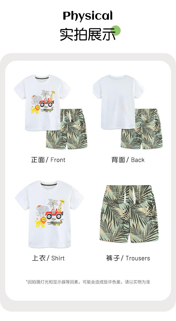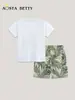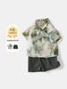 Verão 2025 Terno para meninos Estilo europeu e americano Estampado Conjunto de duas peças de manga curta para crianças Pulôver de algodão infantil